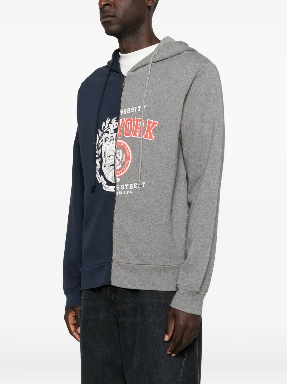 Синий/серый графический принт капюшон на завязках застежка-молния спереди длинные рукава ребристый низ