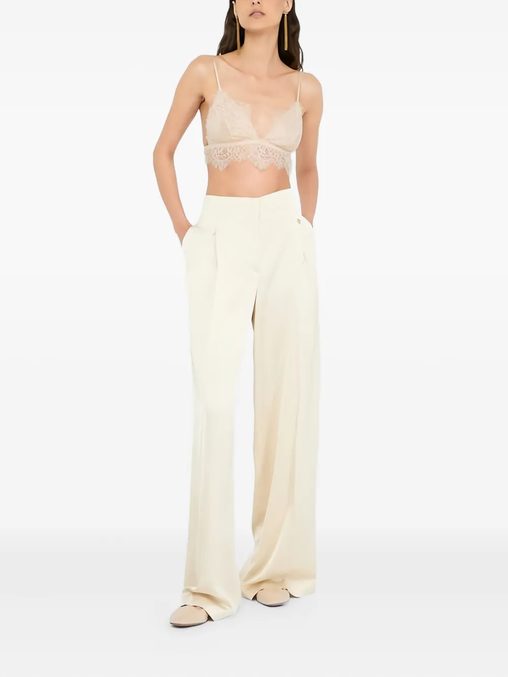 Сливочно-белые палаццо с металлическим логотипом, защипами, заутюженными складками и застежкой-молнией