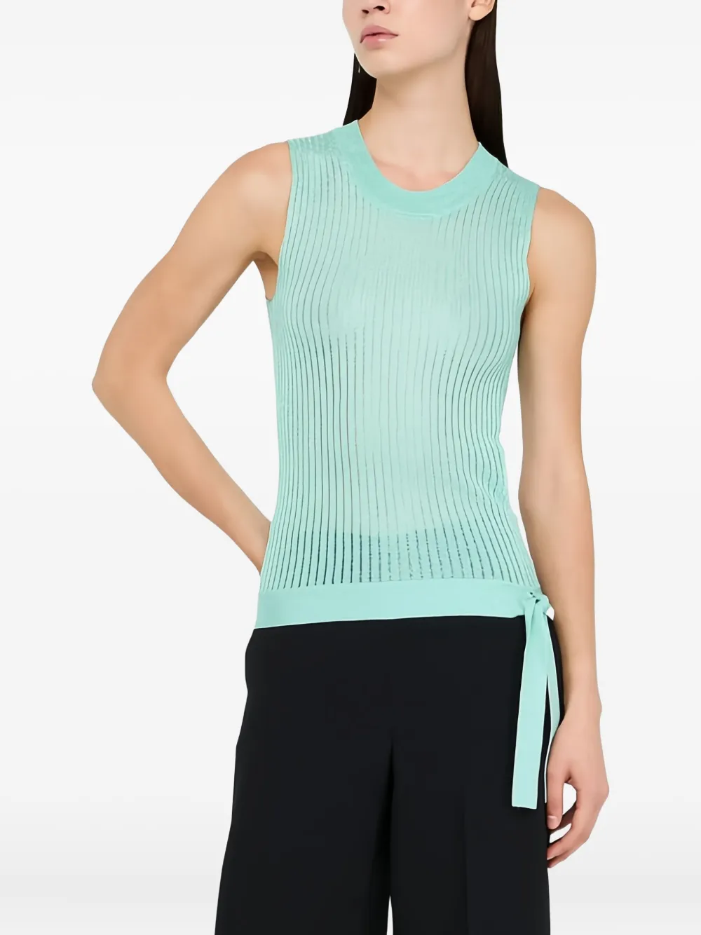 Синий в рубчик трикотажный топ с круглым вырезом и боковым поясом