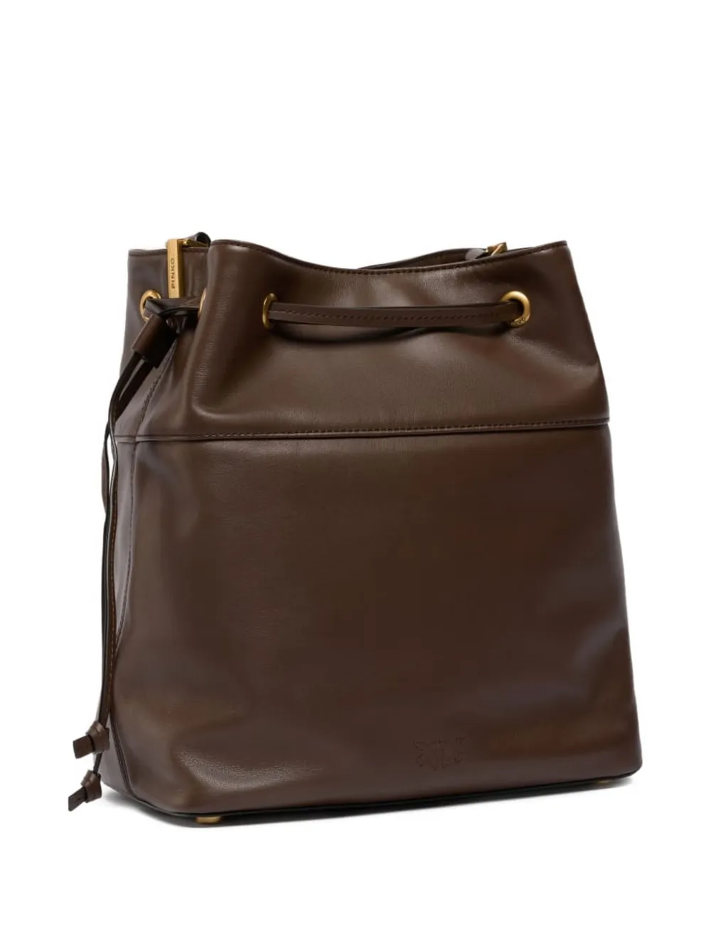 Drawstring leather bucket bag PINKO, коричневый 38 412₽