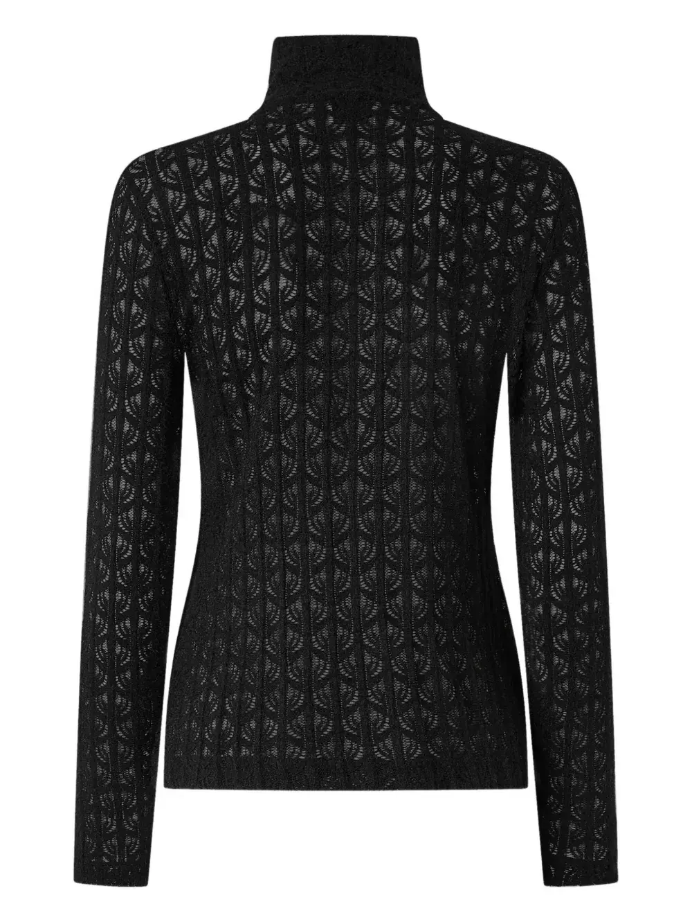Черная водолазка ажурного дизайна, длинные рукава, ребристый низ, ребристые манжеты