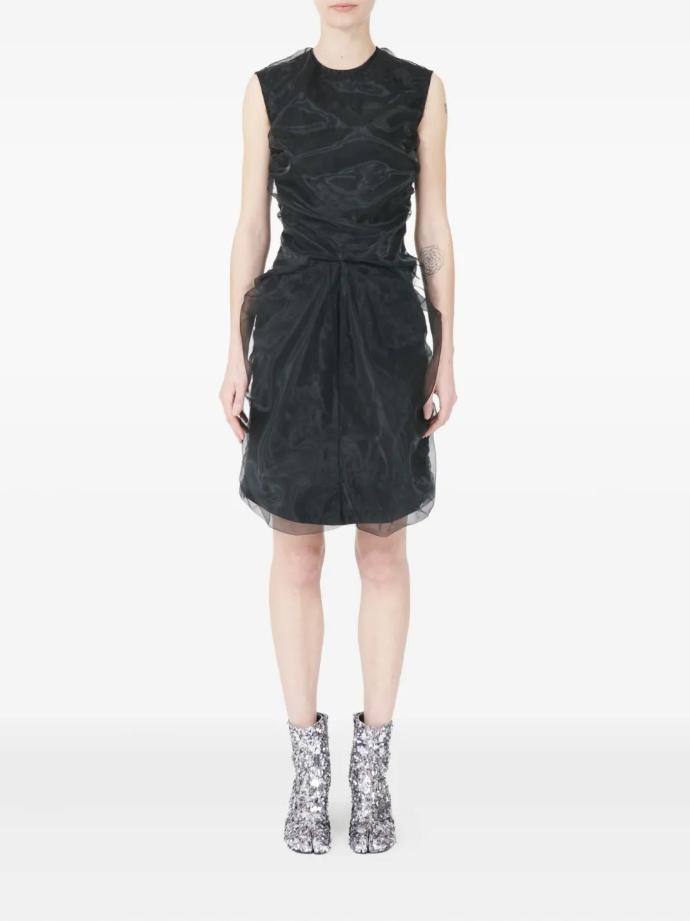 Платье мини без рукавов с оборками MAISON MARGIELA, черный