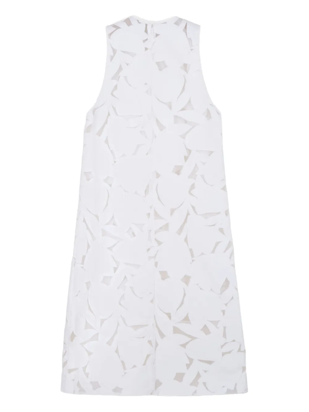 Белое платье миди без рукавов из смеси хлопка и шелка с деталями фил-купе, круглым вырезом