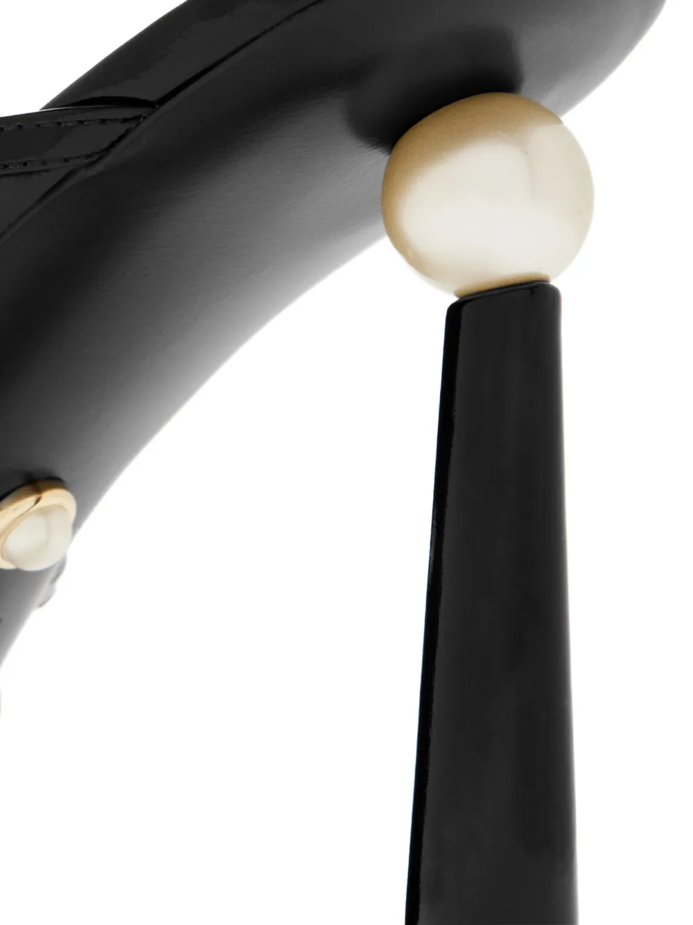 Черный лакированная кожа решетчатый дизайн открытый носок высокий каблук декор каблука искусственными жемчужинами