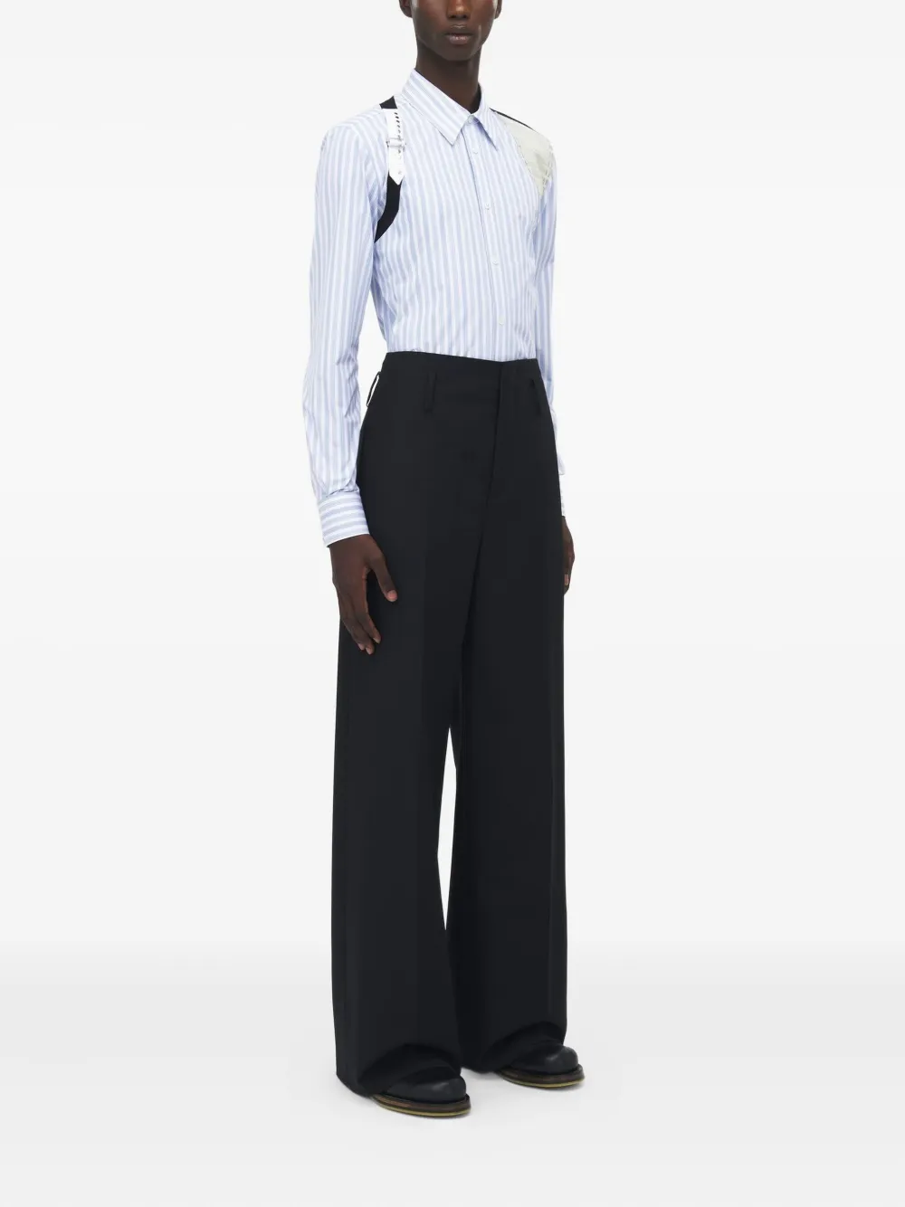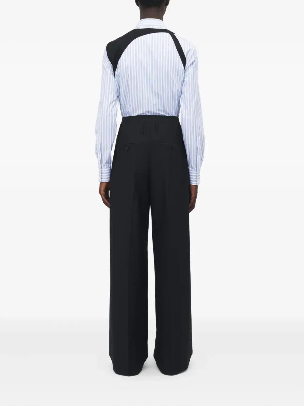 Черные брюки с плиссированной передней частью, прямыми широкими штанинами, высокой талией, прямым низом и скрытой застежкой-молнией