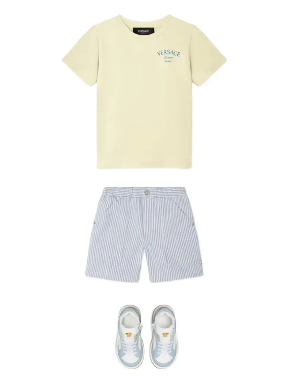 Белый/синий, два боковых кармана с обеих сторон, эластичный пояс, застежка на пуговицу, прямой низ