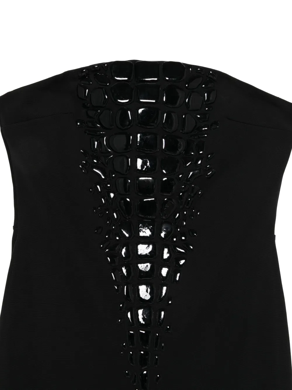 Черный лиф без бретелек приталенный корсет фактурная вставка длина миди