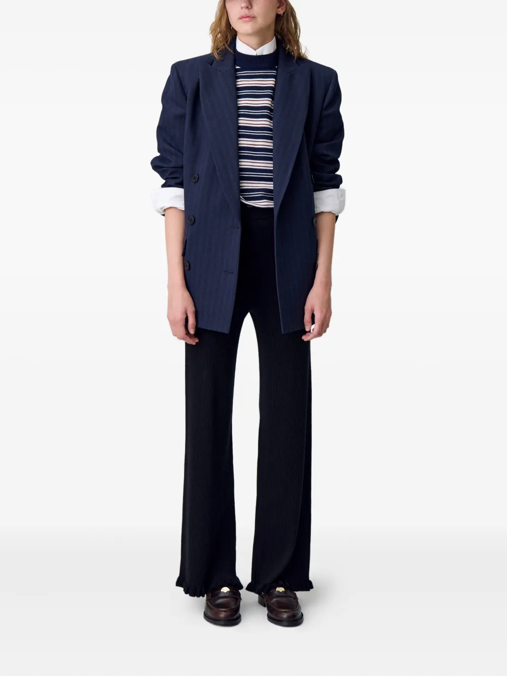 Брюки в рубчик с оборками Claudie Pierlot, черный