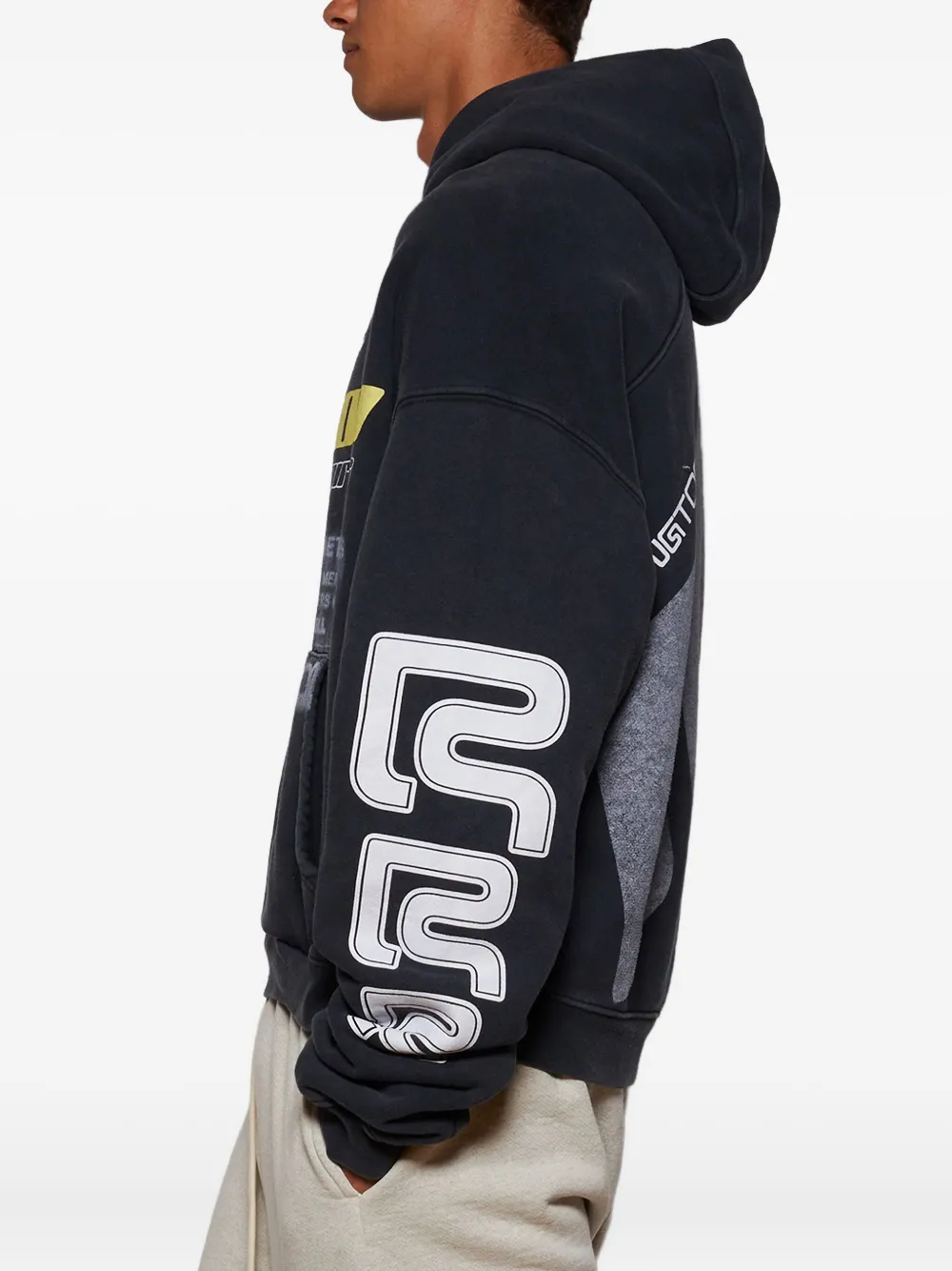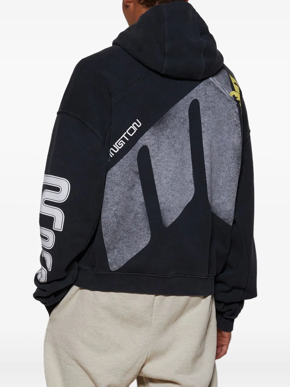 Черный графический принт принт с текстом карман-кенгуру классический капюшон