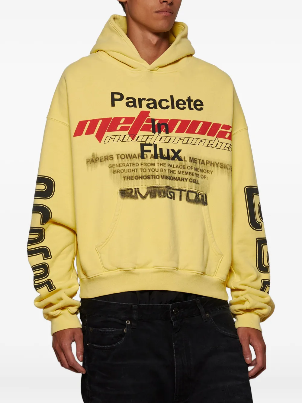 Бледно-желтый графический принт принт с текстом принт на рукаве карман-кенгуру