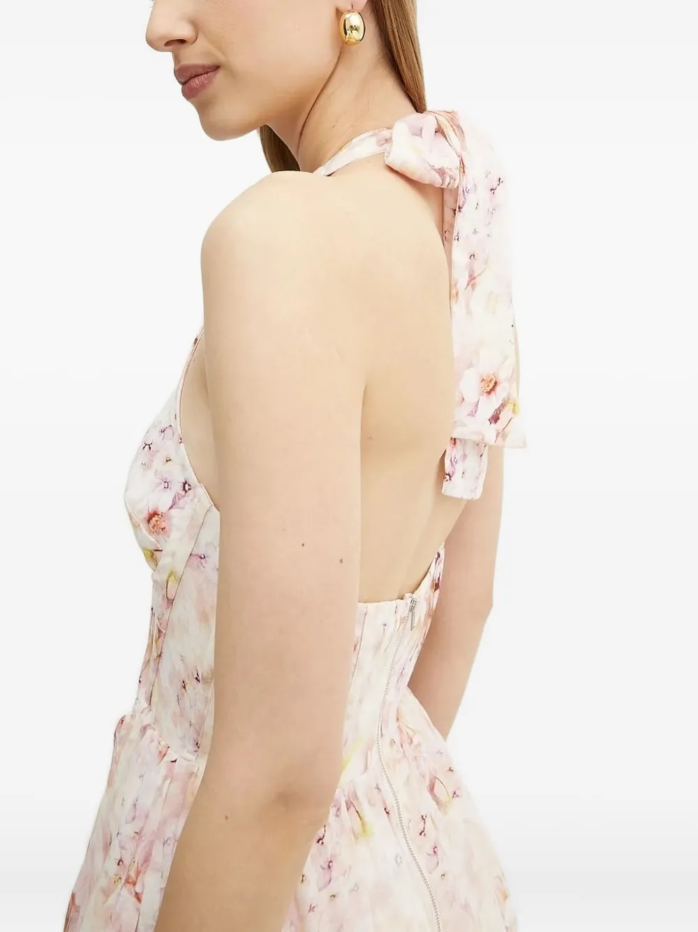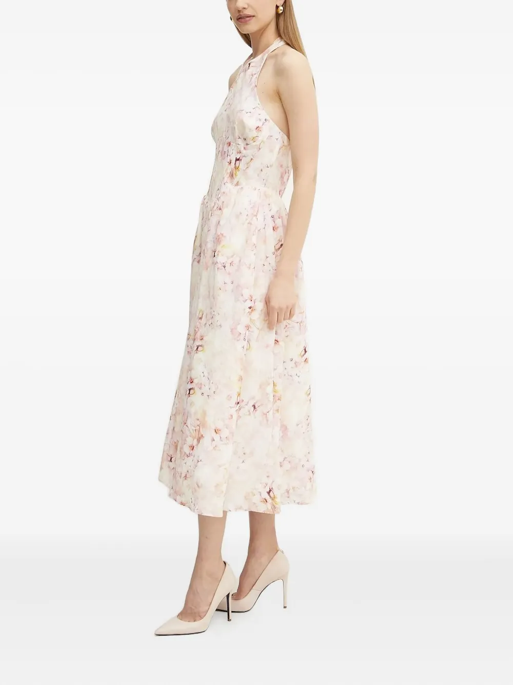 Платье миди с вырезом халтер и цветочным принтом Bardot, розовый