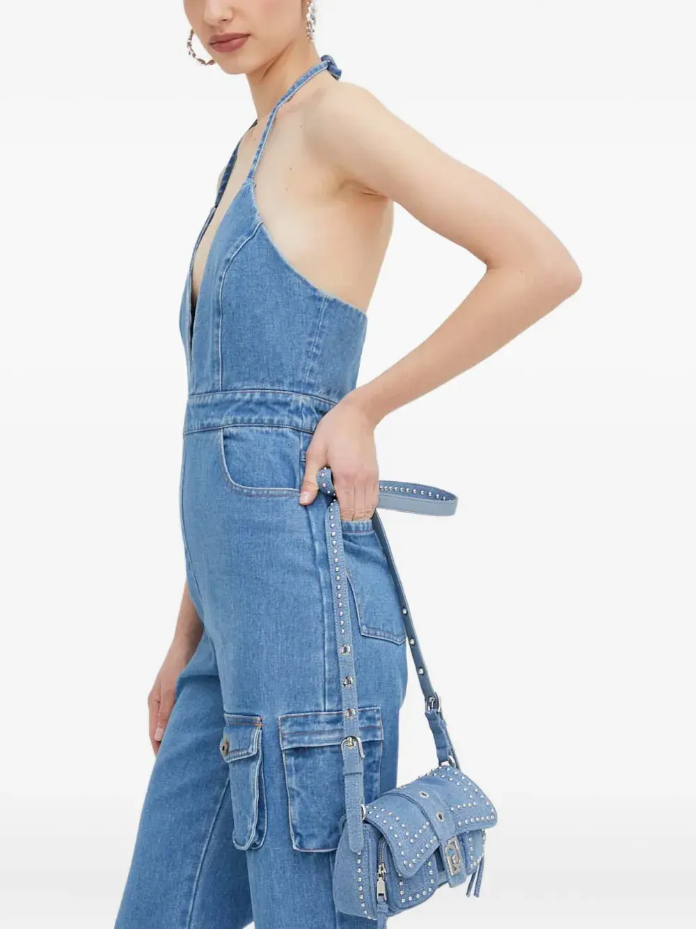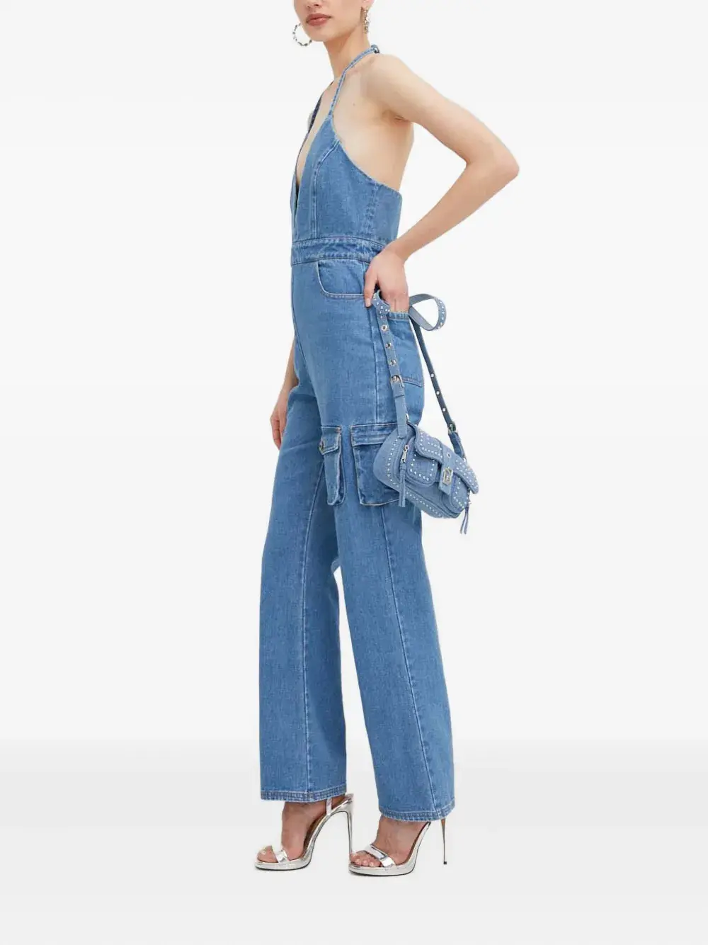 Комбинезон карго с вырезом халтер Bardot, синий