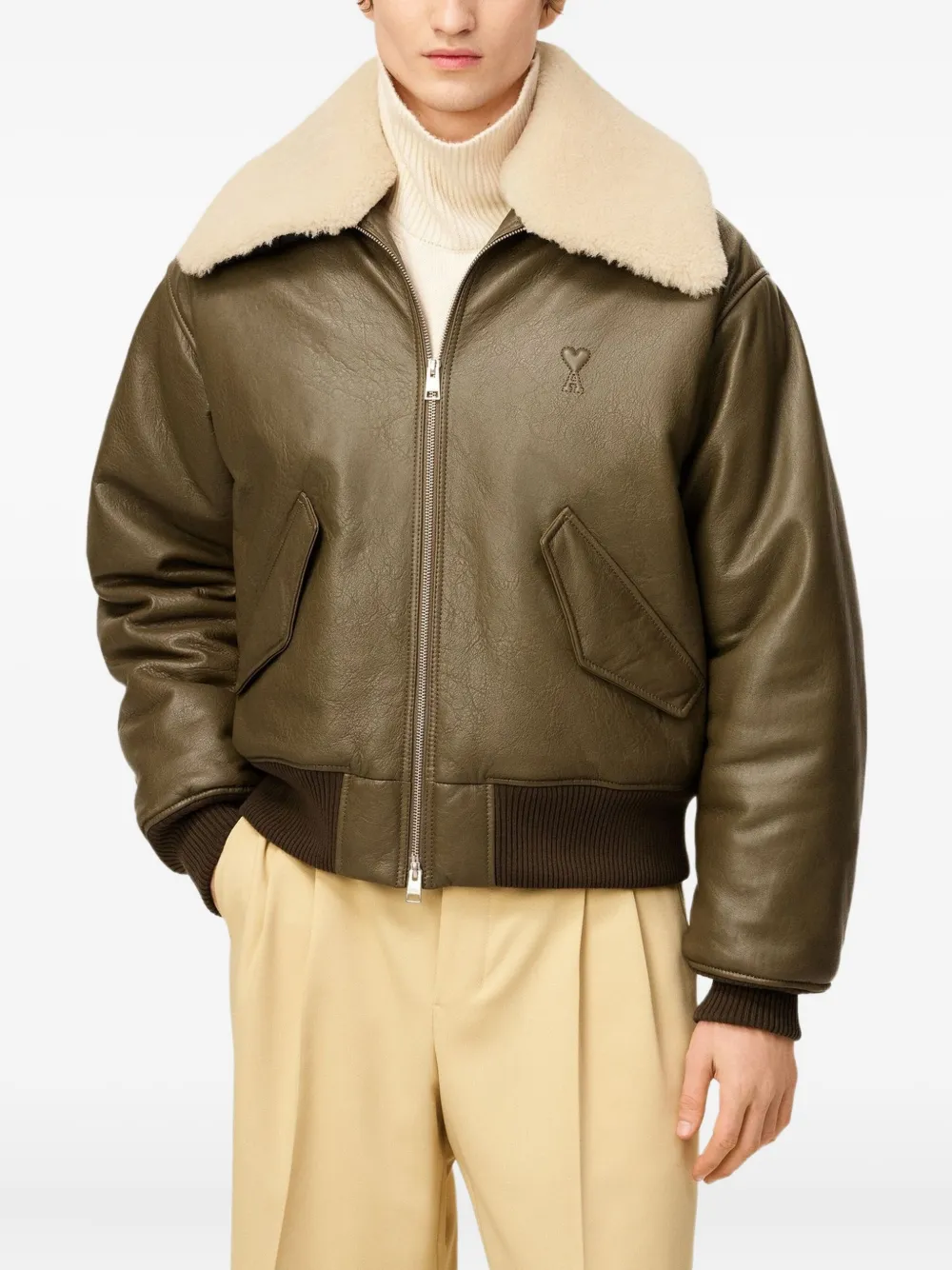 Куртка с контрастным воротником AMI Paris, зеленый 113 867₽