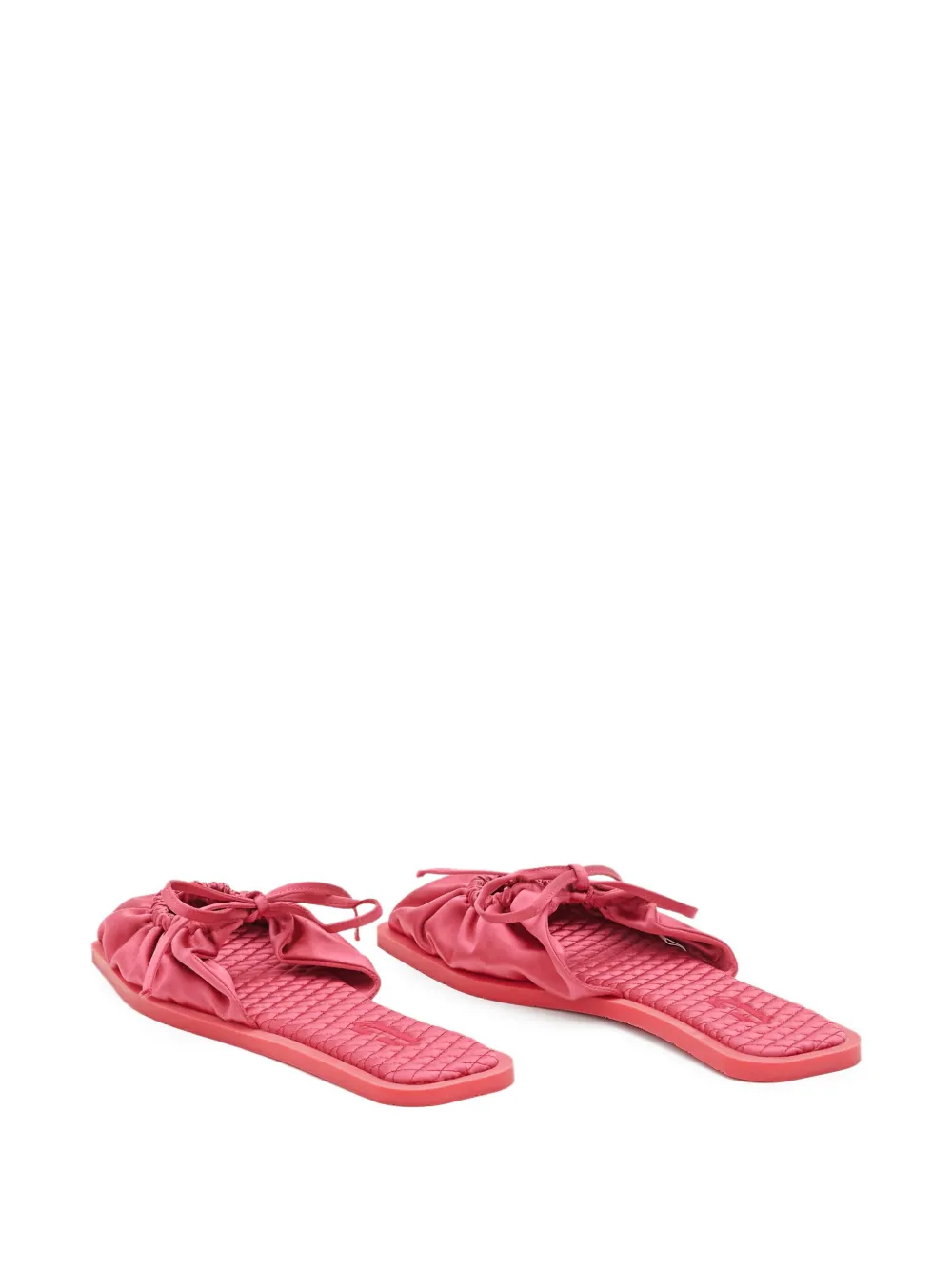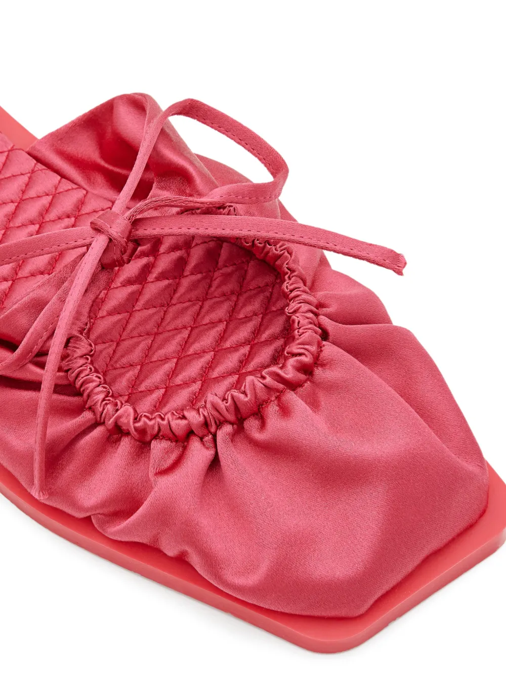 Розовый стеганная стелька завязывающаяся застежка сборчатая ткань плоская подошва открытый носок