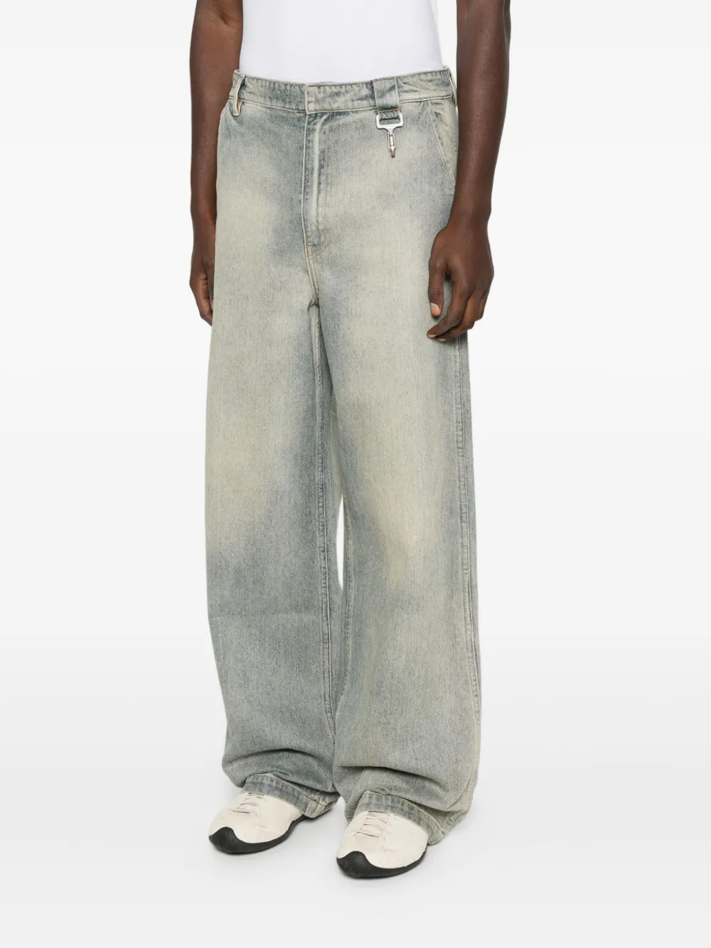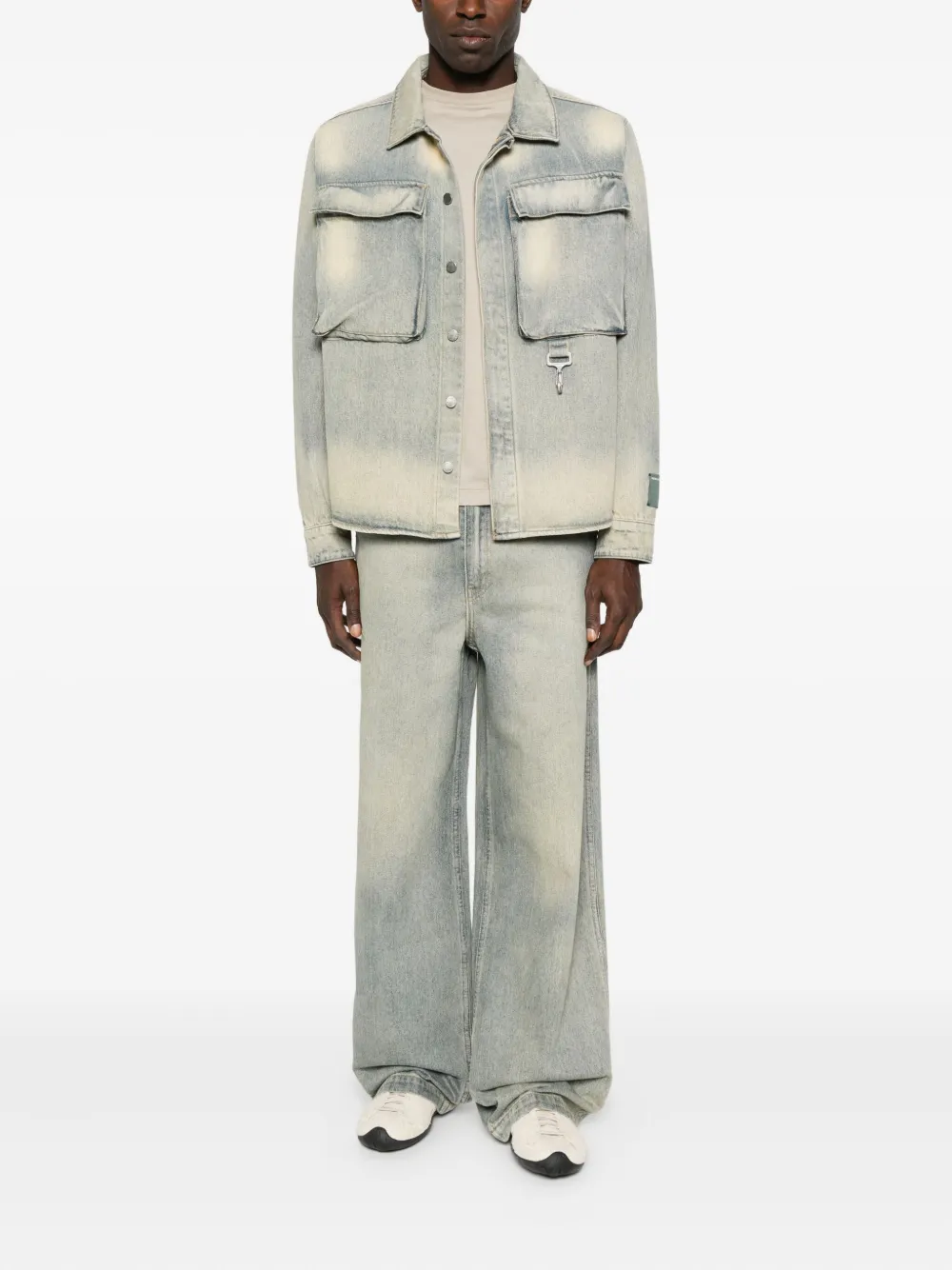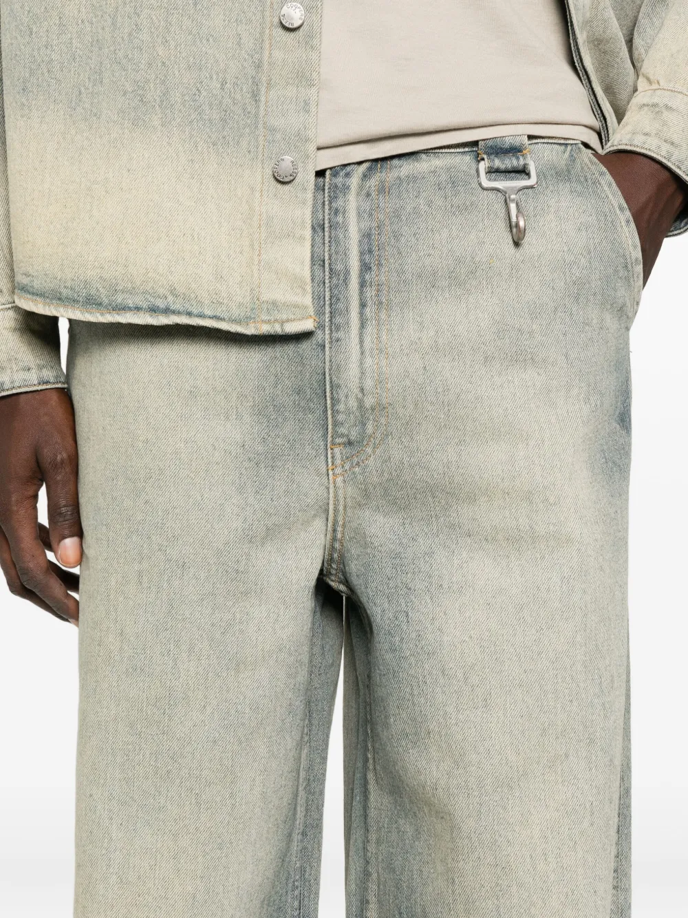 Светло-голубой скрытая застежка на пуговицах прямой крой брюк классические пять карманов шлевки для пояса детали из металла