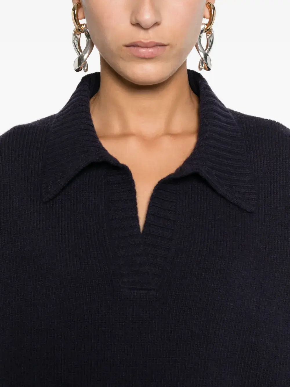 Синий вирджинская шерсть отложной воротник длинные рукава в рубчик