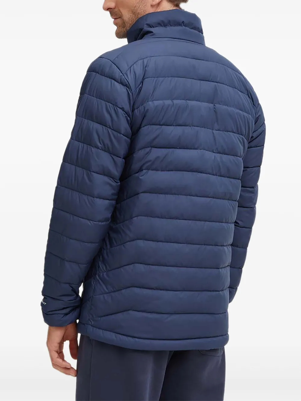 Темно-синий стеганая отделка высокий воротник застежка на молнию длинные рукава деталь с логотипом