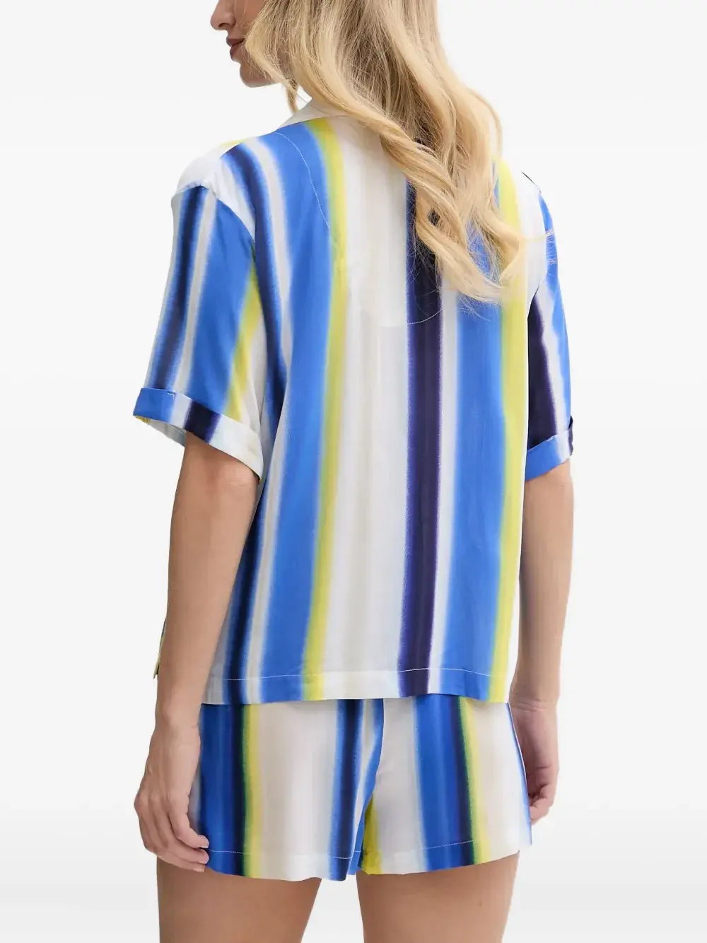 Синий воротник-стойка пояс на завязке застежка на пуговицы