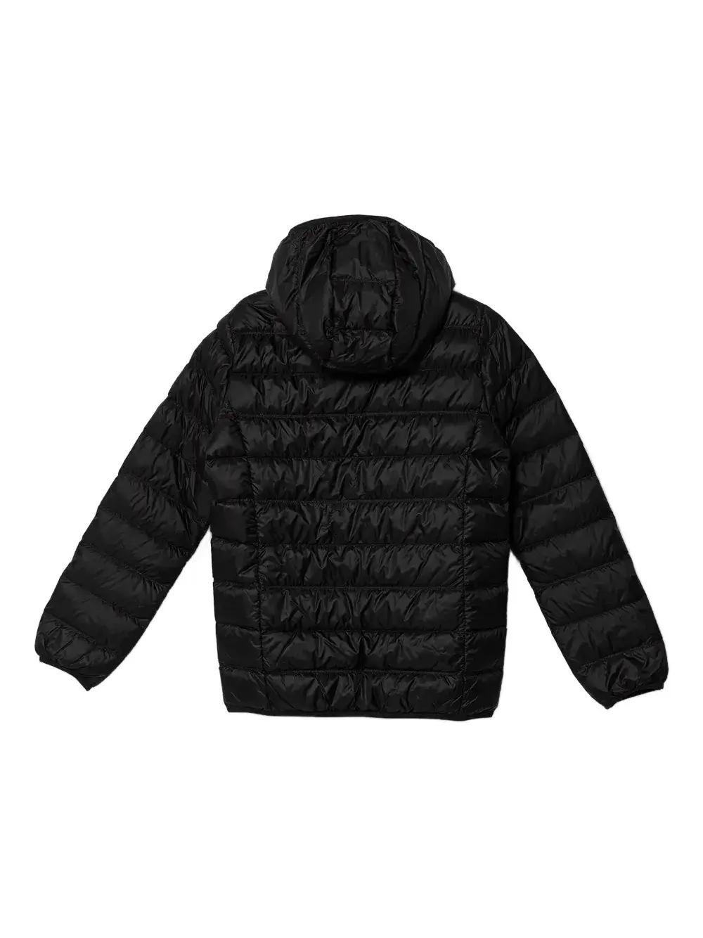 Черный пухлый дизайн, капюшон, застежка-молния спереди, длинные рукава, логотип