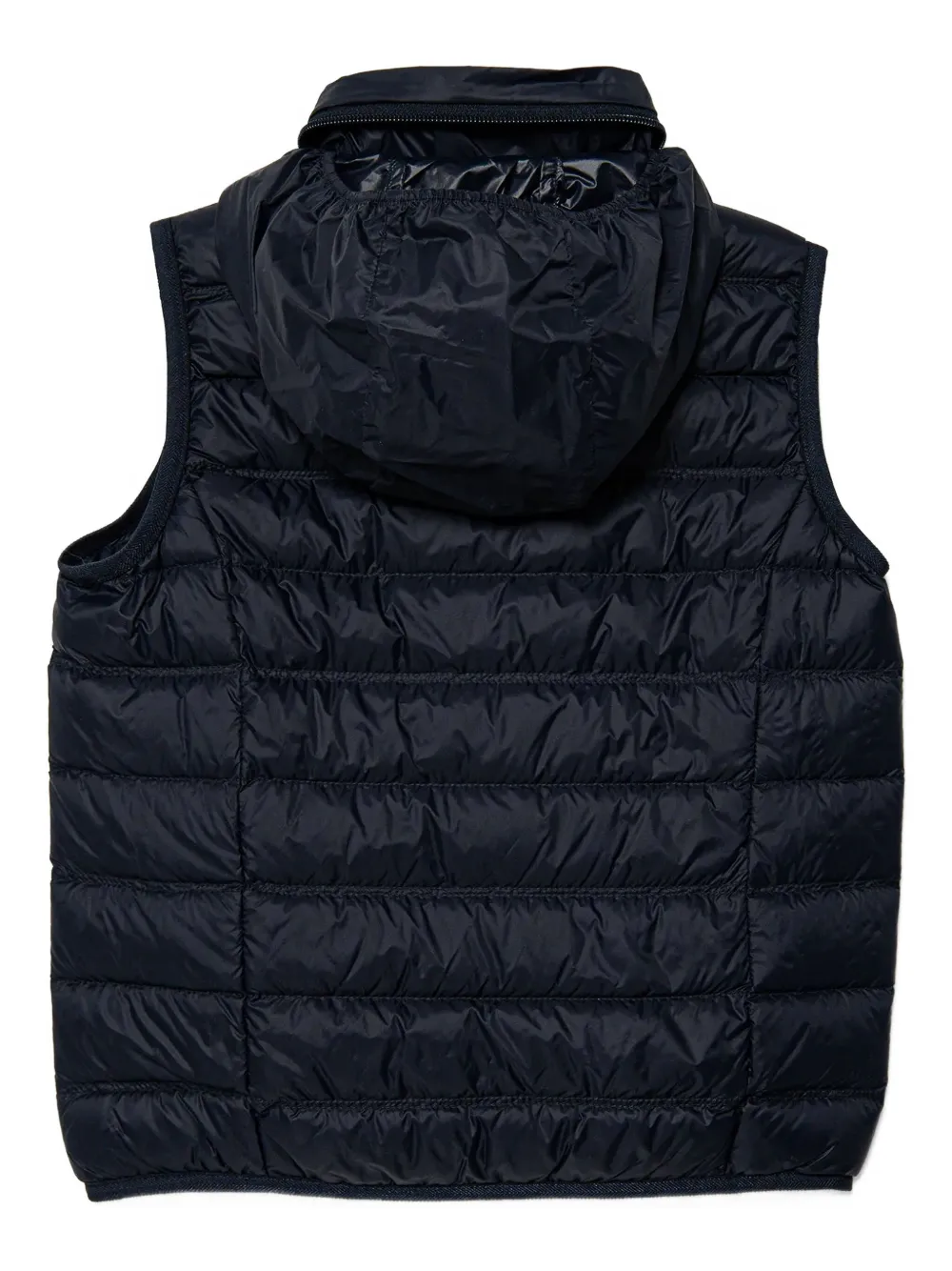 Темно-синий стеганый жилет на молнии спереди с потайным капюшоном