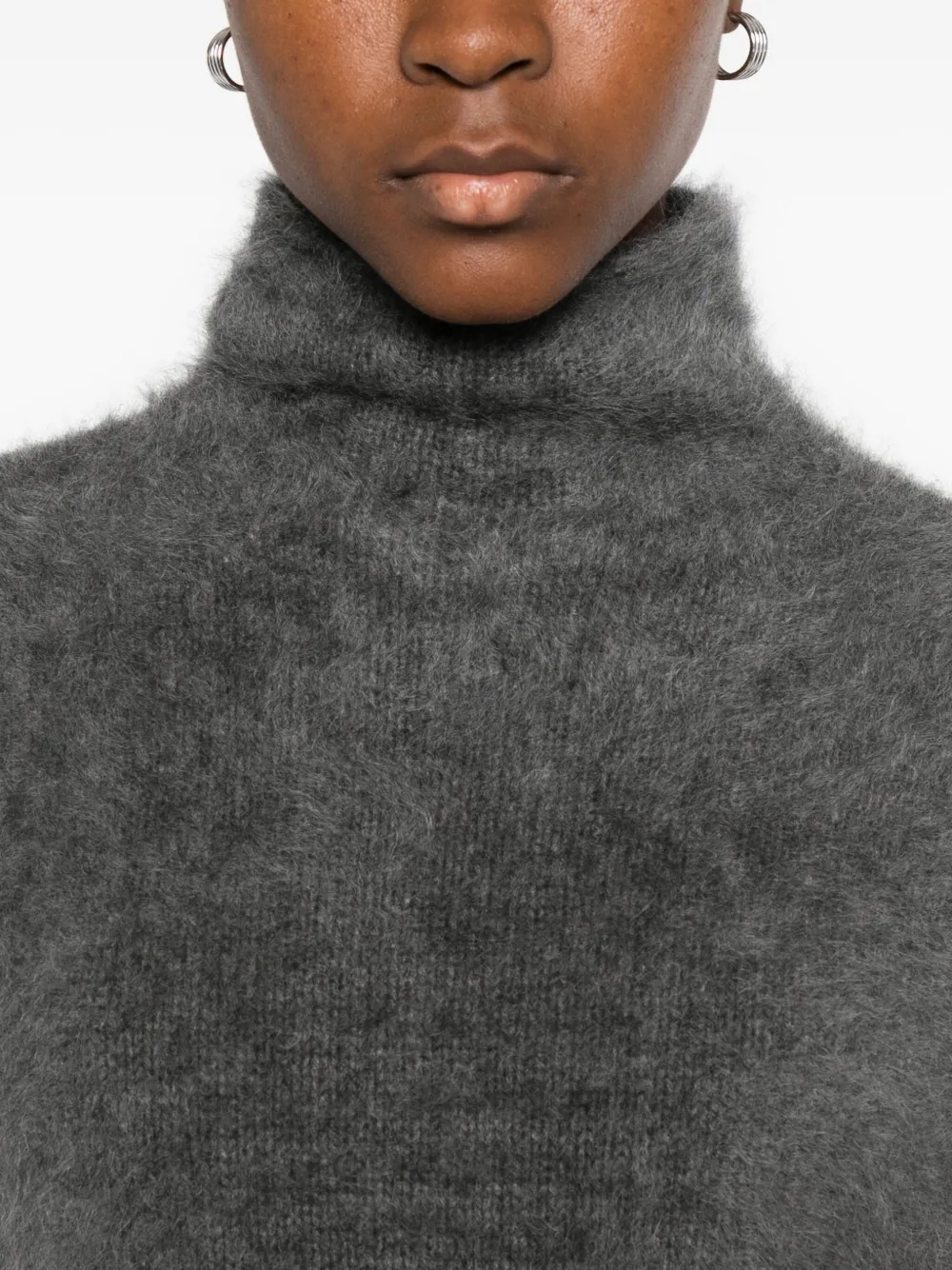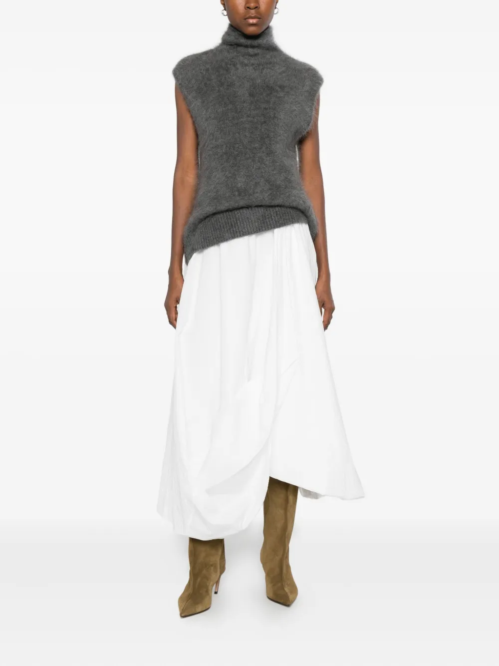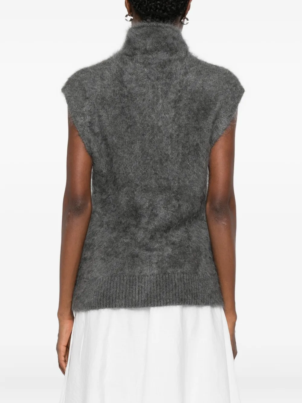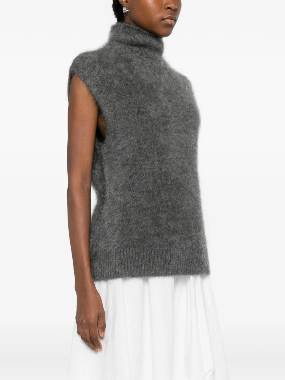Серый безрукавный свитер с высоким воротником и ребристым подолом