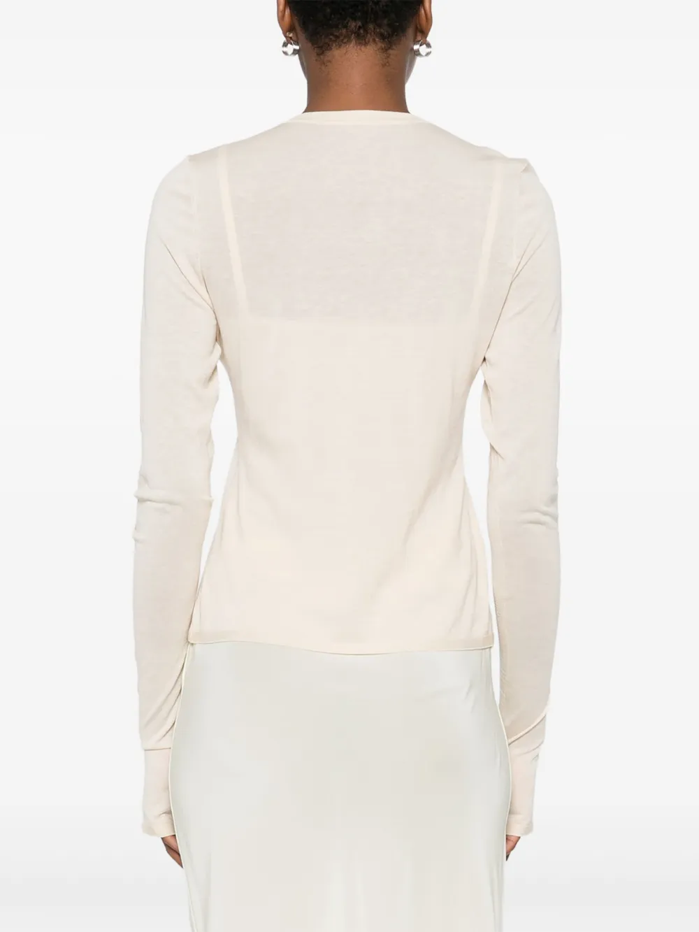 Бежевый длинные рукава застежка на пуговицы спереди круглый вырез