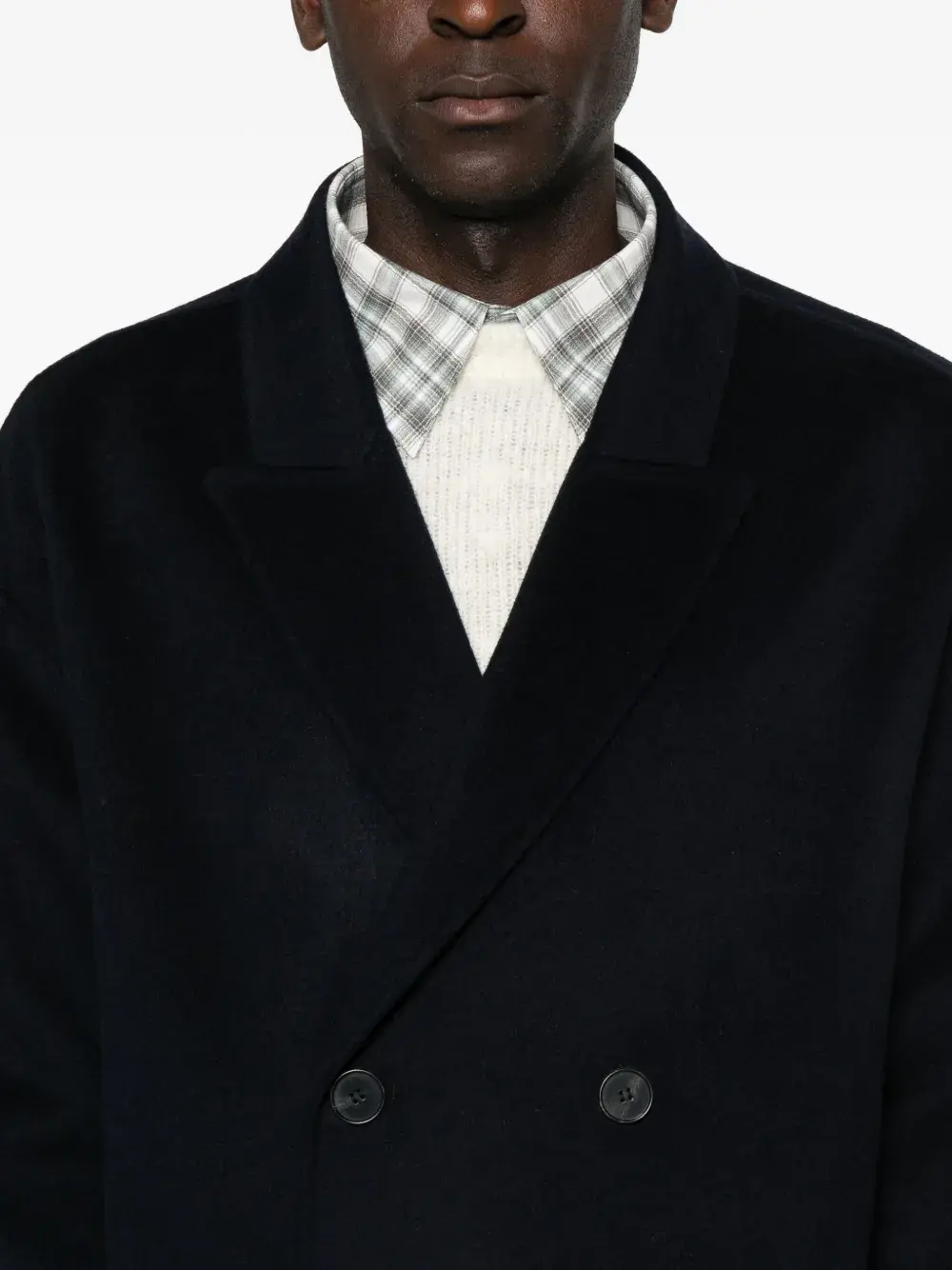 Синийдвубортная застежка на пуговицыострые лацканыдлинные рукавабоковые прорезные карманы