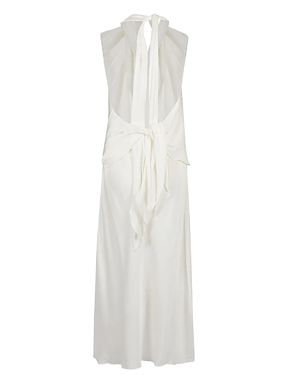 Белый воротник-хомут без рукавов застежка сзади на завязках драпировка асимметричный подол