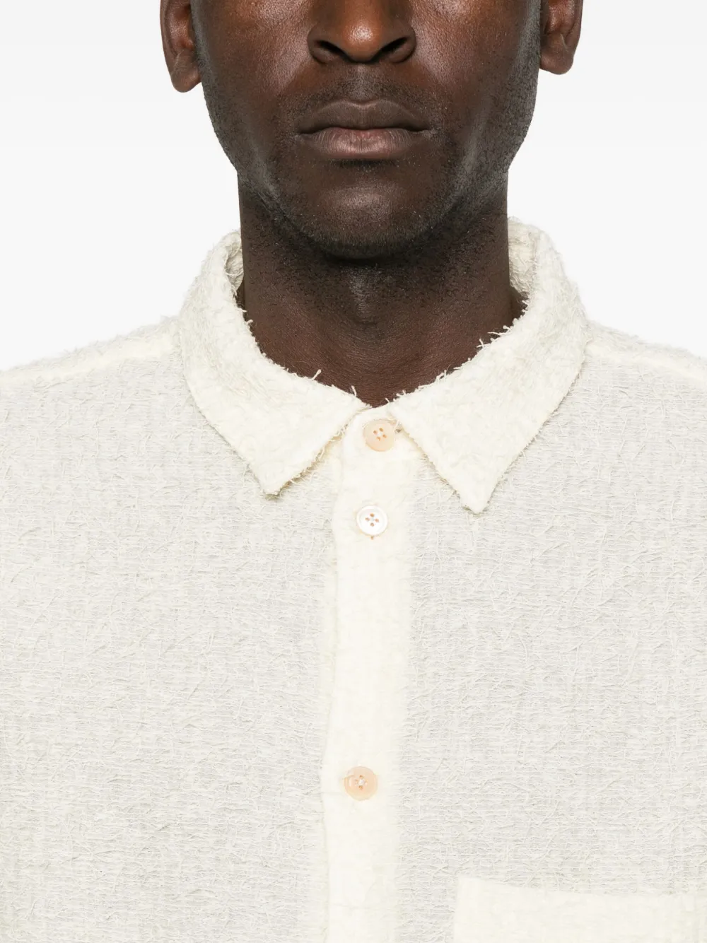 Белый нагрудный накладной карман застежка на пуговицы спереди длинные рукава классический воротник ворсистый эффект