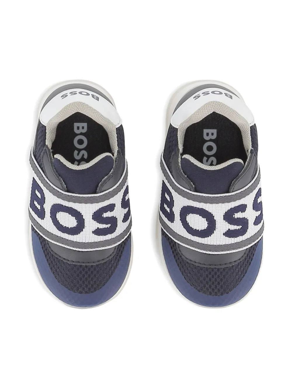 Слипоны с логотипом на ремешке BOSS Kidswear, серый