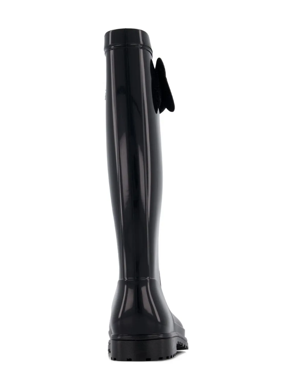 Черный глянцевый финиш, мотив с медвежонком, ремешок с логотипом, рифленая подошва, круглый носок