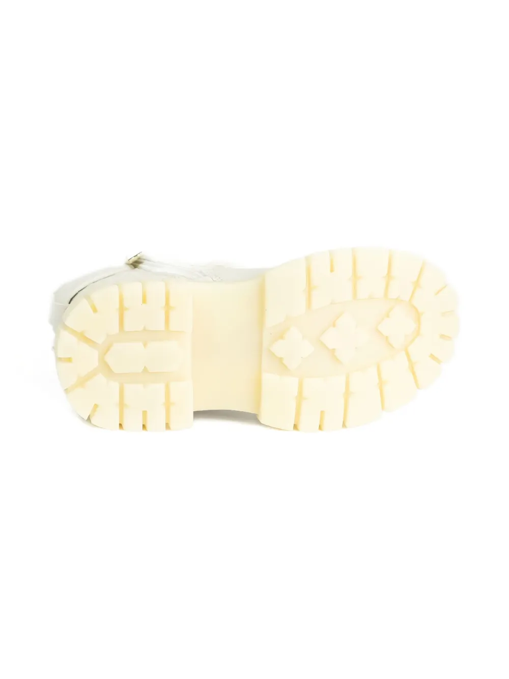 Белые кроссовки с простеганным узором, шнуровкой, ремешком с пряжкой, массивной подошвой и фурнитурой золотистого оттенка