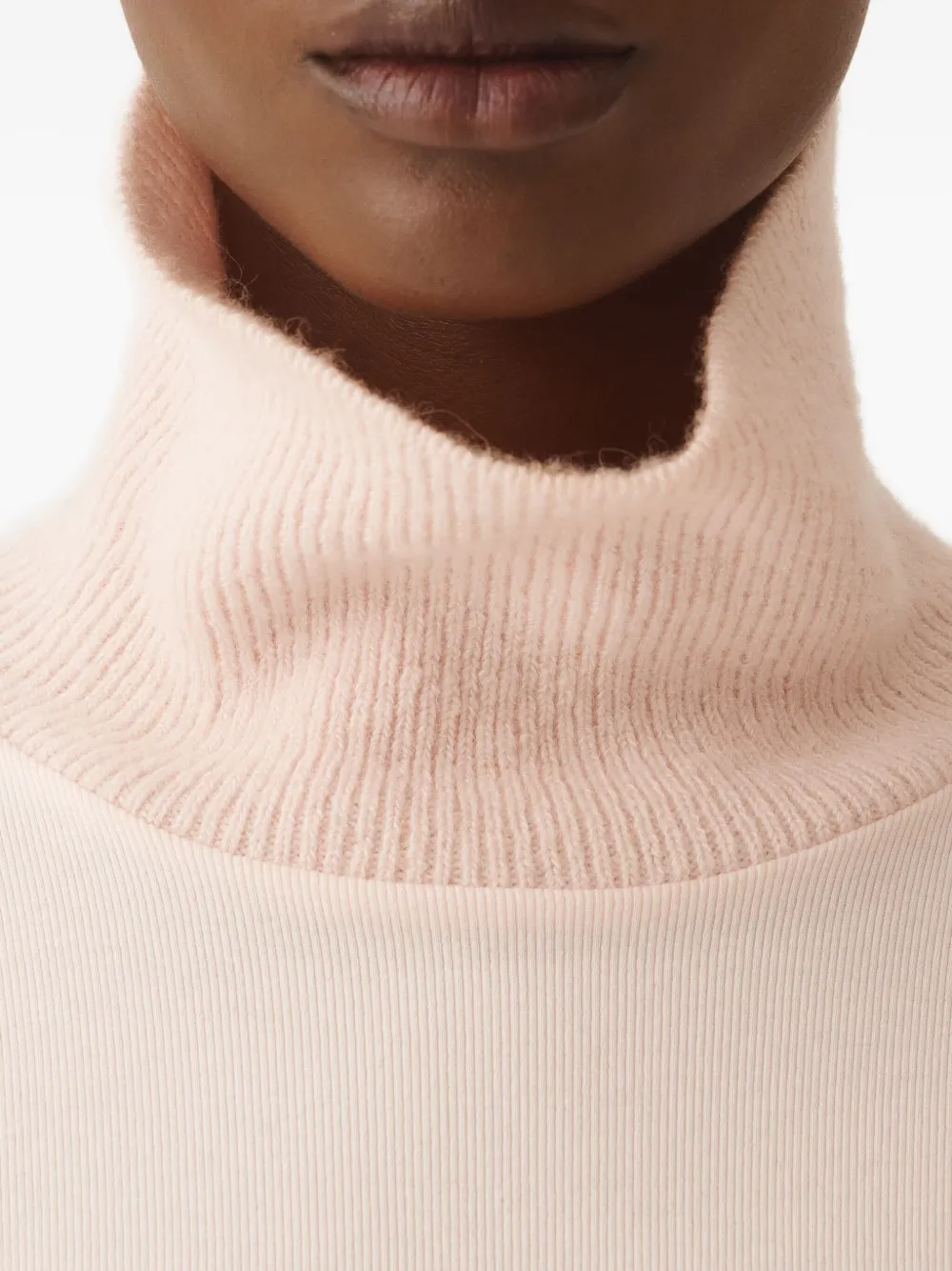 Светло-розовый воротник-стойка длинные рукава манжеты в рубчик