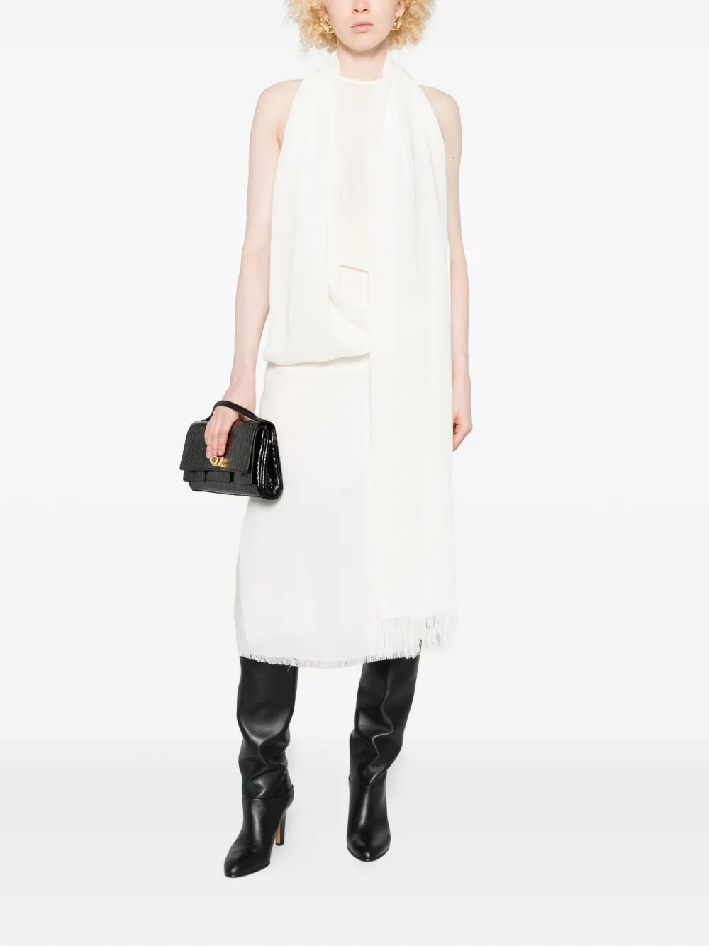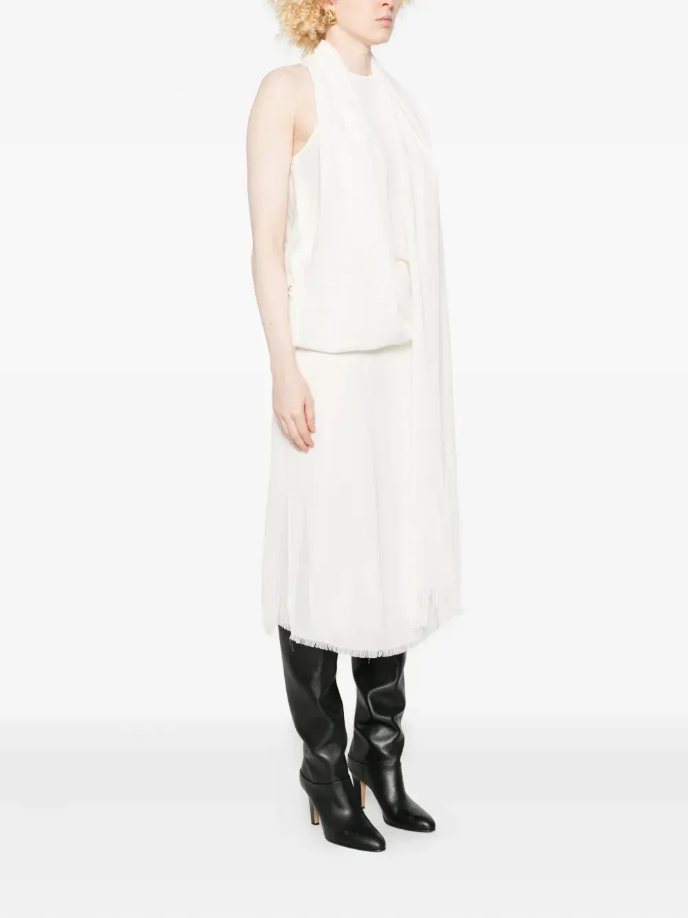 Драпированное платье с бахромой TOTEME, белый