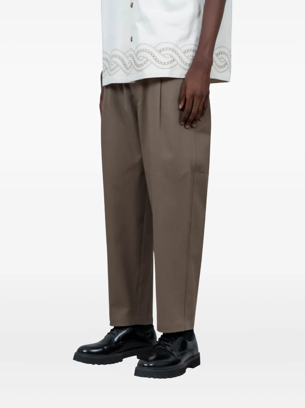 Серо-коричневый хлопок плиссированная передняя часть боковые карманы застежка на пуговицу прямая штанина