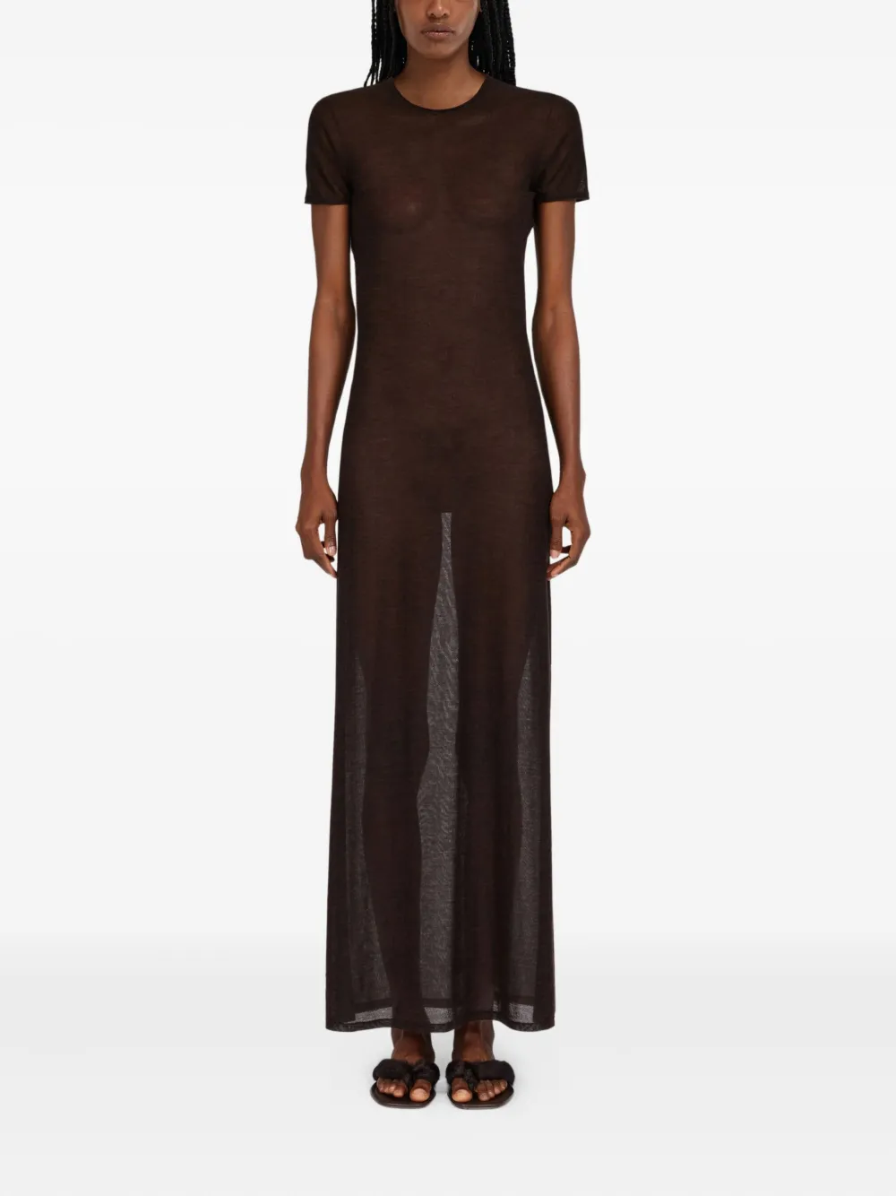 Темно-кофейный цвет короткие рукава воротник с подгибом рукава с подгибом бесшовная конструкция макси длина