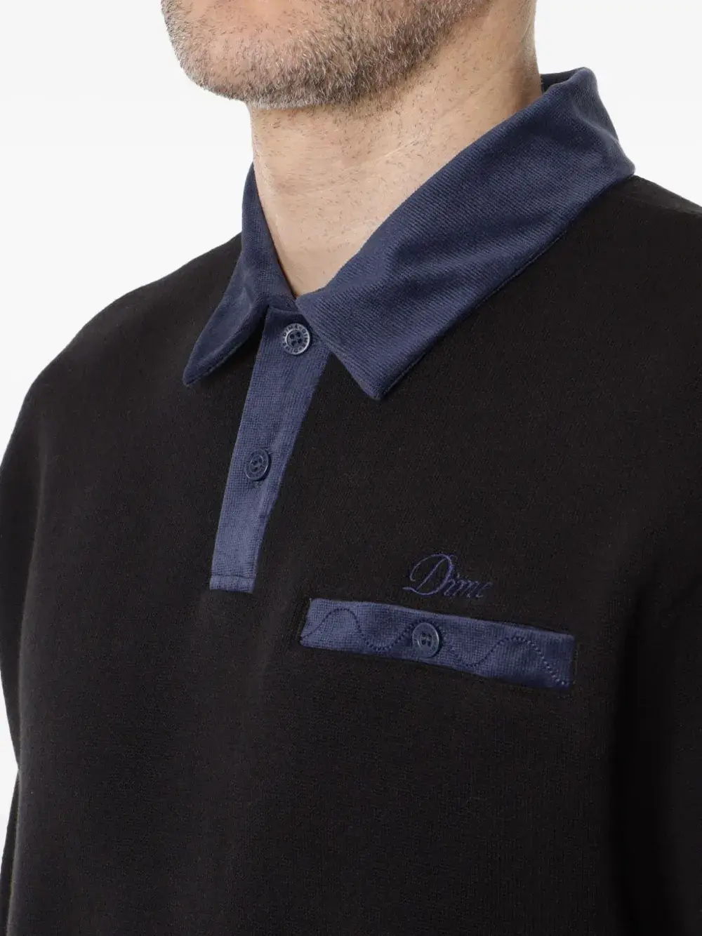 Черный бархатный воротник застежка на пуговицы нагрудный прорезной карман вышитая деталь