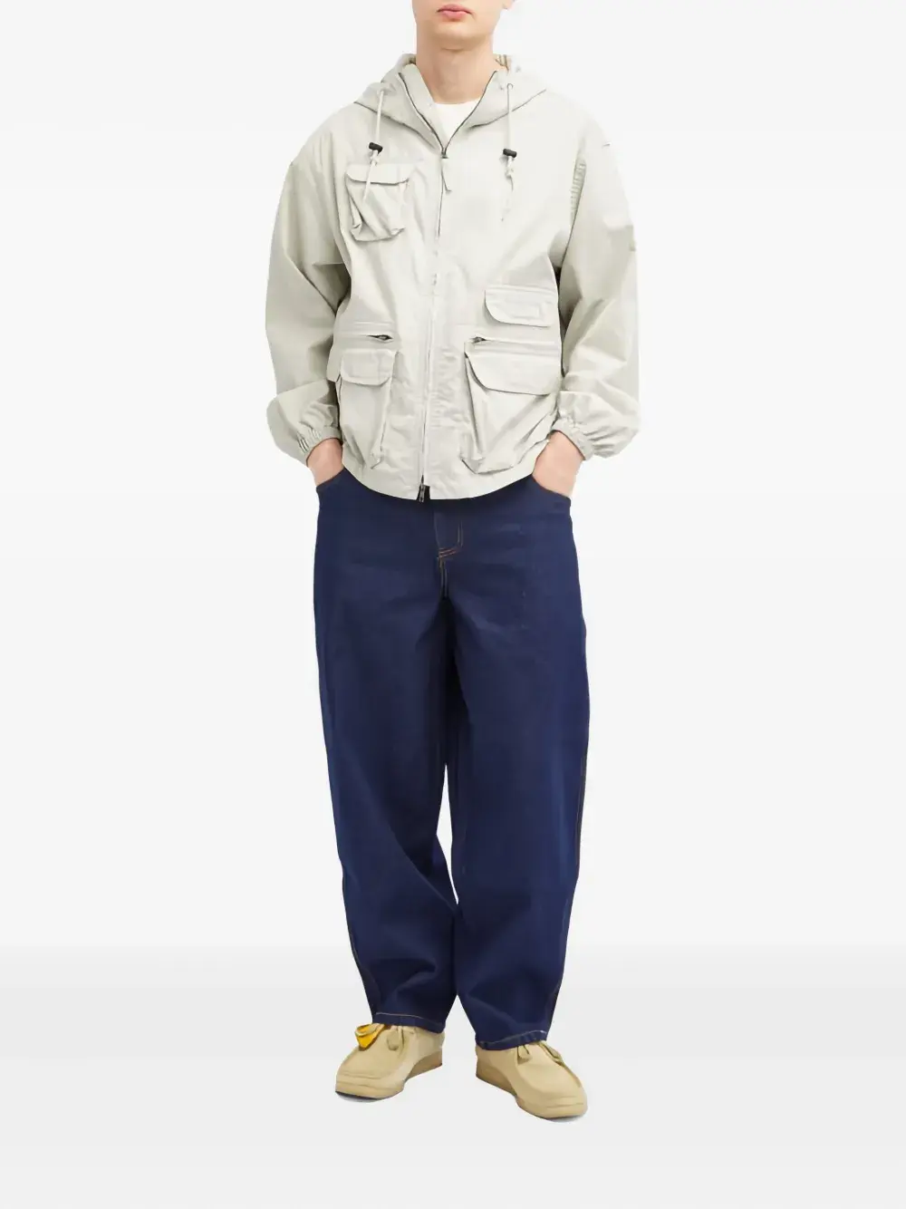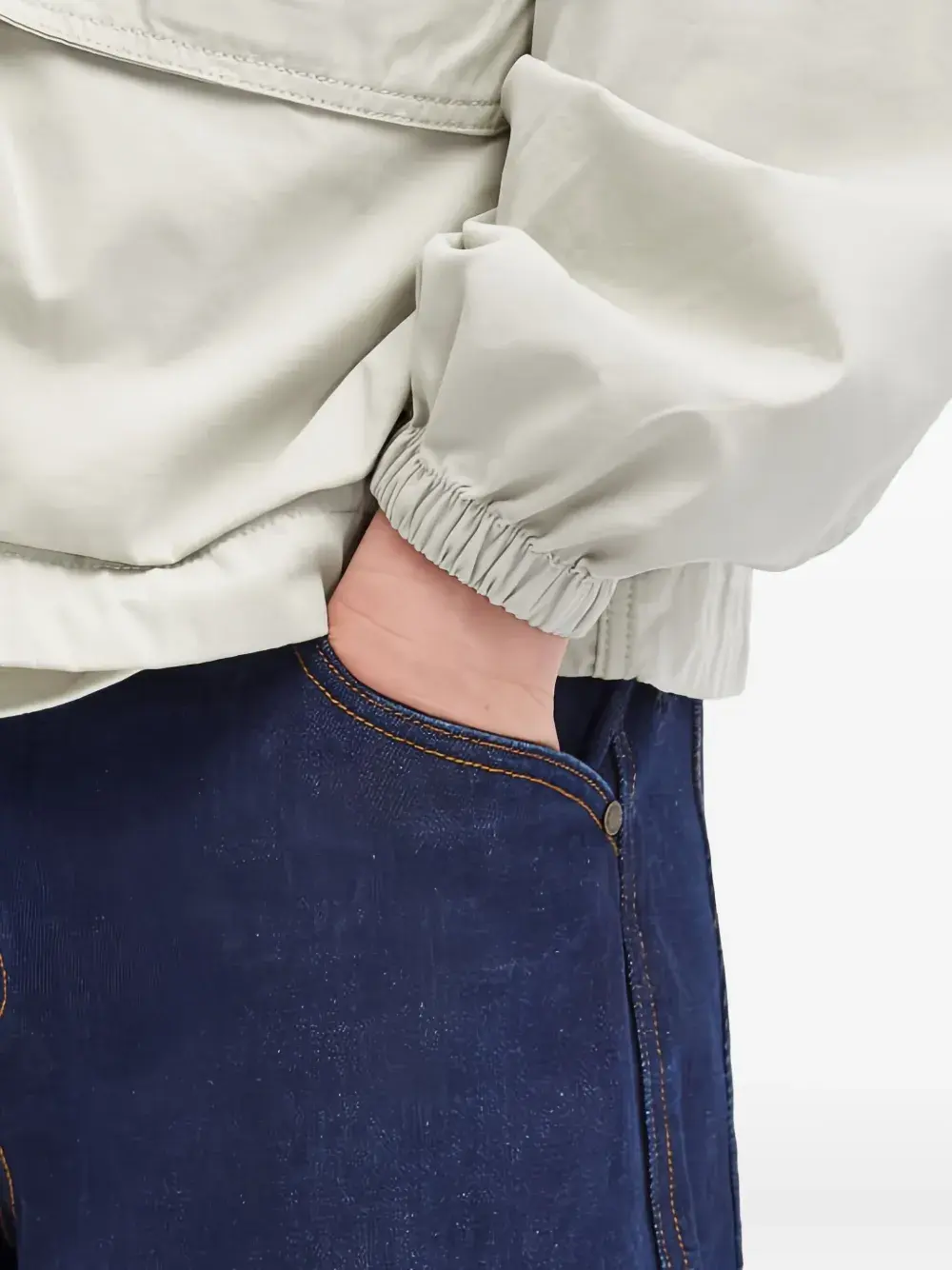 Индиго синий классический свободный крой классические пять карманов вышитый логотип оранжевая отделочная строчка