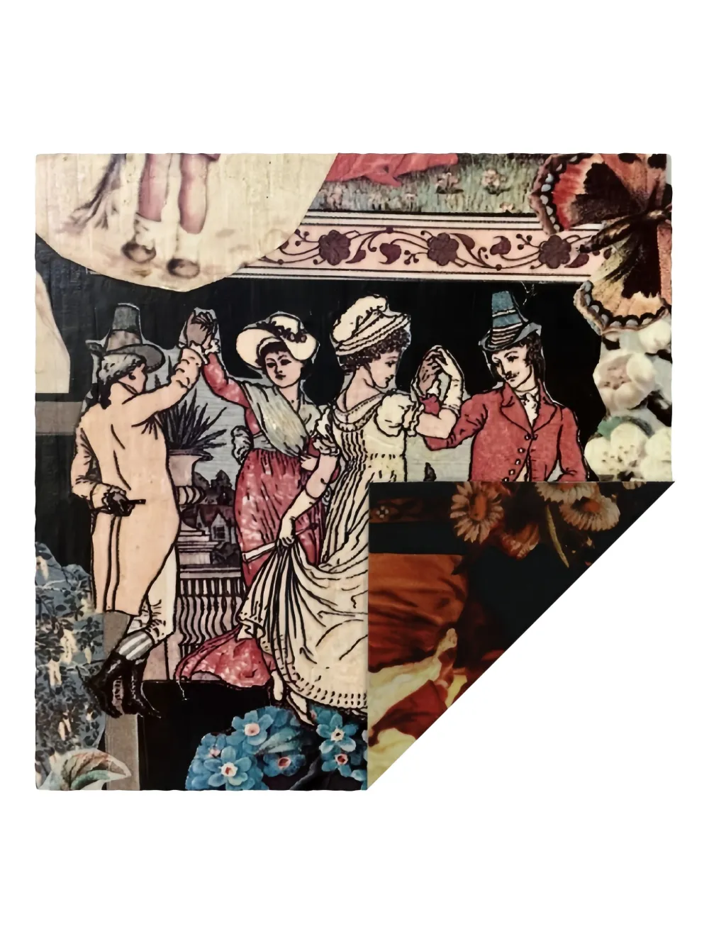 Черный квадратная форма дизайн-коллаж цветочные принты обработанный край
