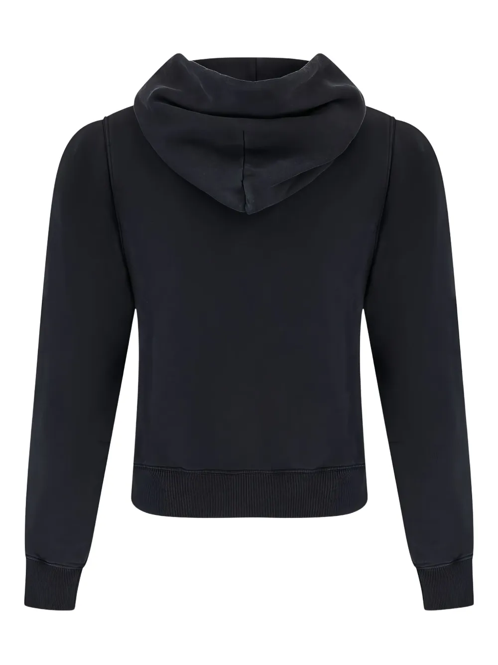 Черный логотип (принт) капюшон на завязках карман-кенгуру длинные рукава рубчатые манжеты рубчатый край