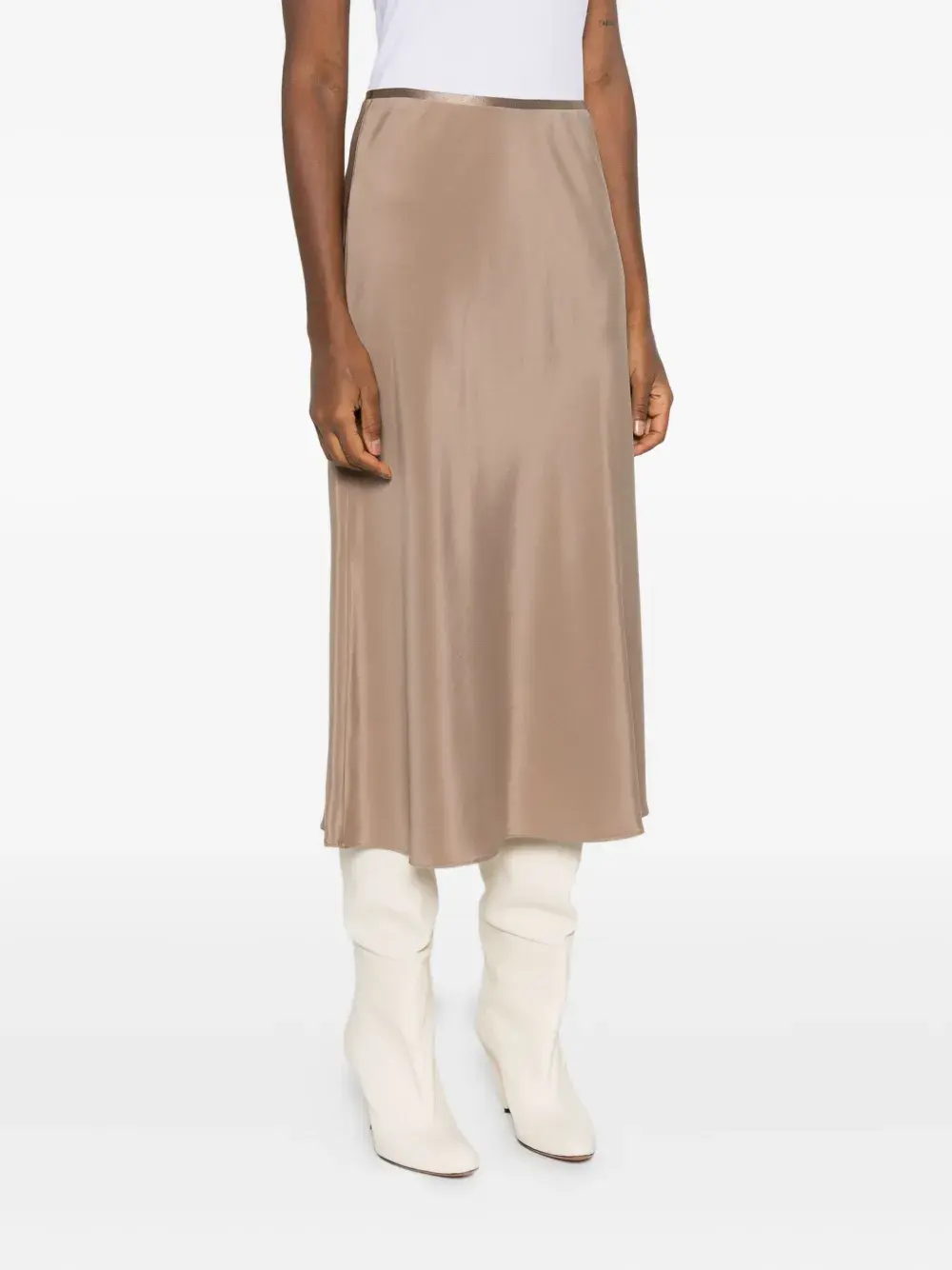 Бежево-тауpe сатиновая отделка крой по косой силуэт "А-силуэт" прямой подол
