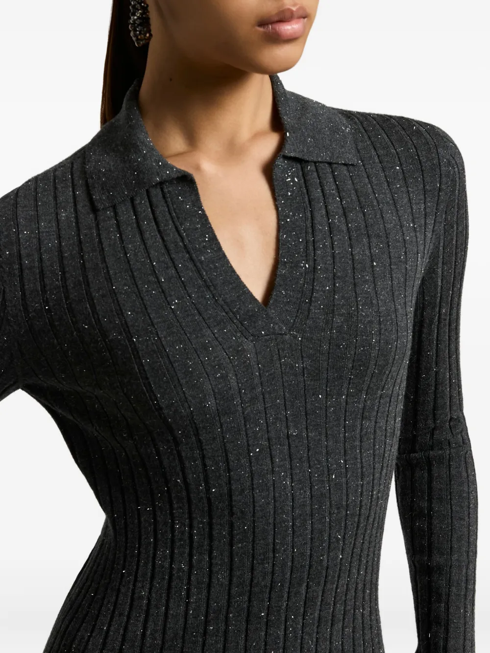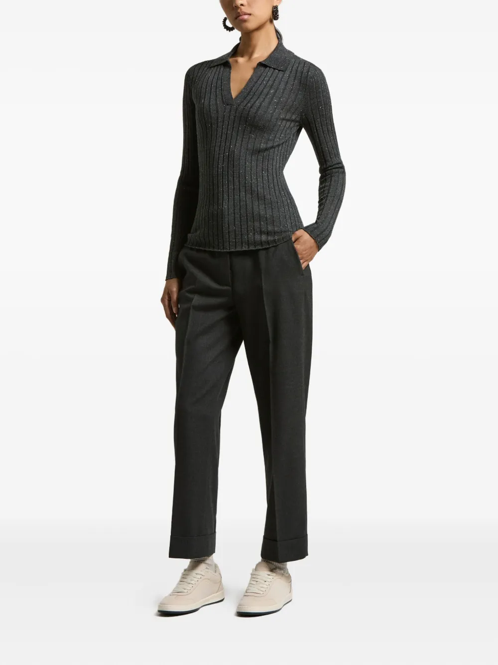 Пуловер в рубчик с воротником поло Peserico, серый 44 348₽