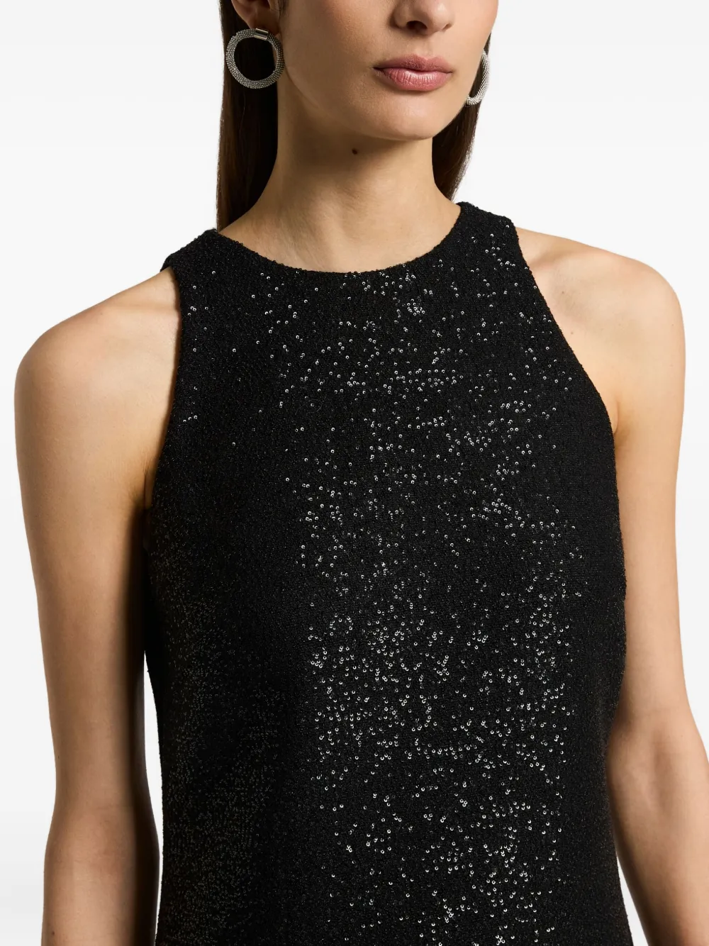 Черный без рукавов круглый вырез средней длины отделка пайетками деталь в виде каплевидного выреза на спинке