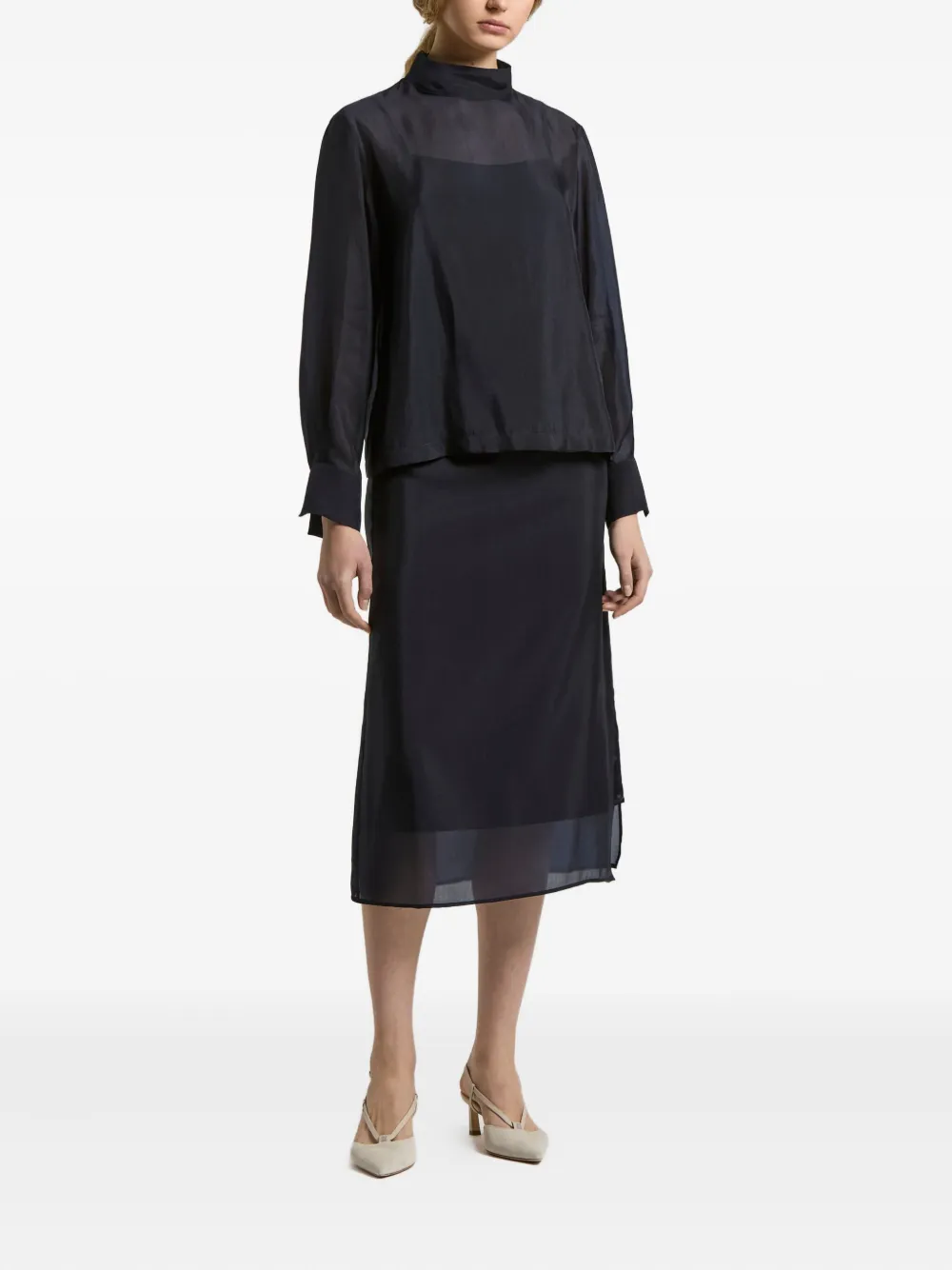 Миди-юбка с шелковыми вставками Peserico, синий