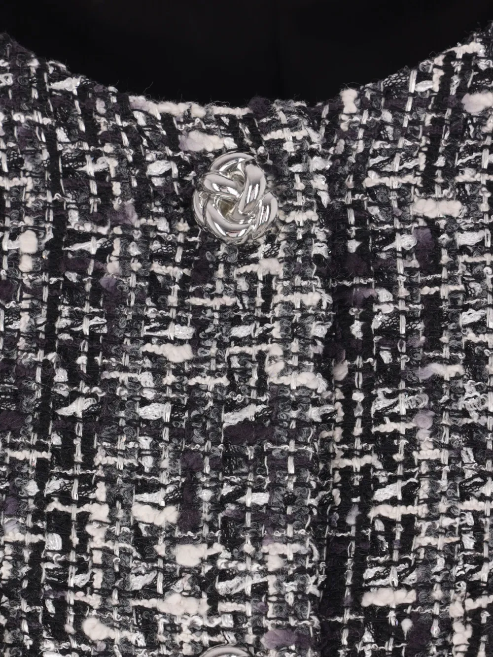 Черный твидовая текстура застежка на пуговицы длинные рукава силуэт «А»-образной формы накладные карманы спереди