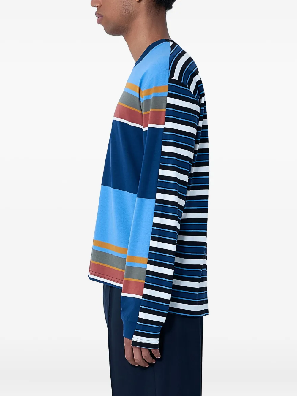 Синий в полоску длинные рукава круглый вырез хлопок