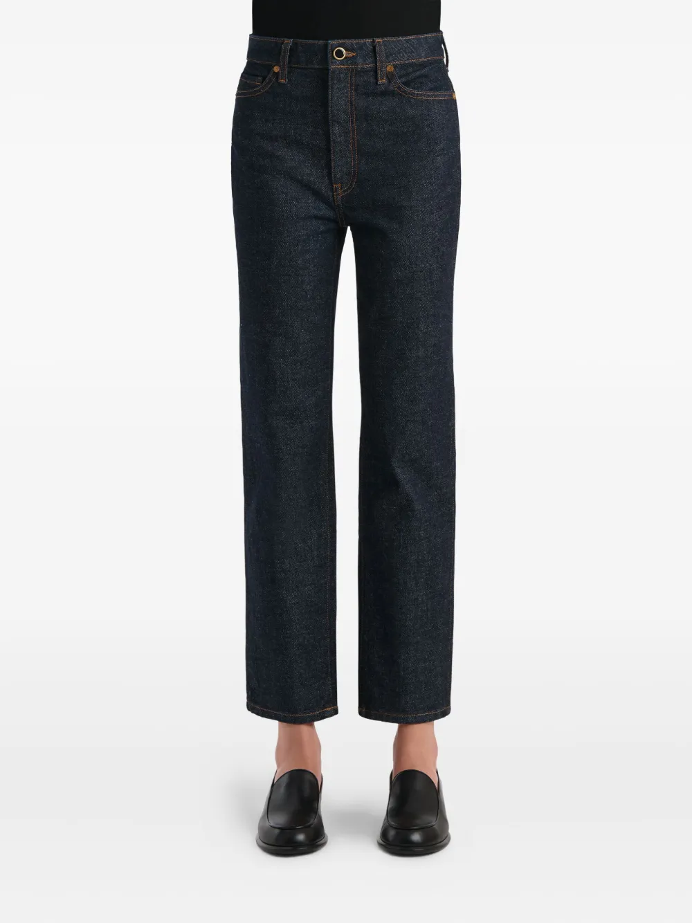 Темно-синий застежка на пуговицы золотистого оттенка пять карманов оранжевая строчка
