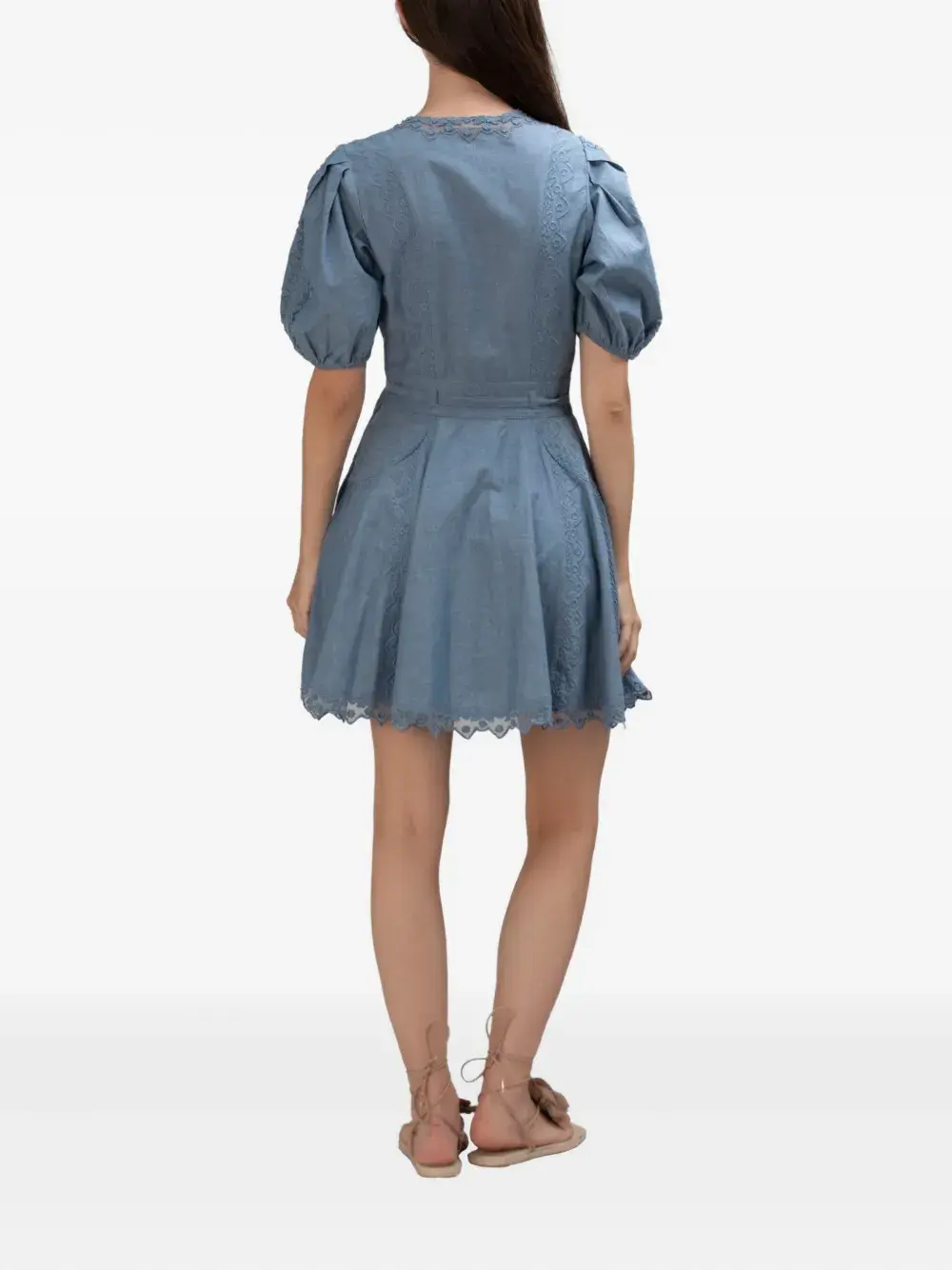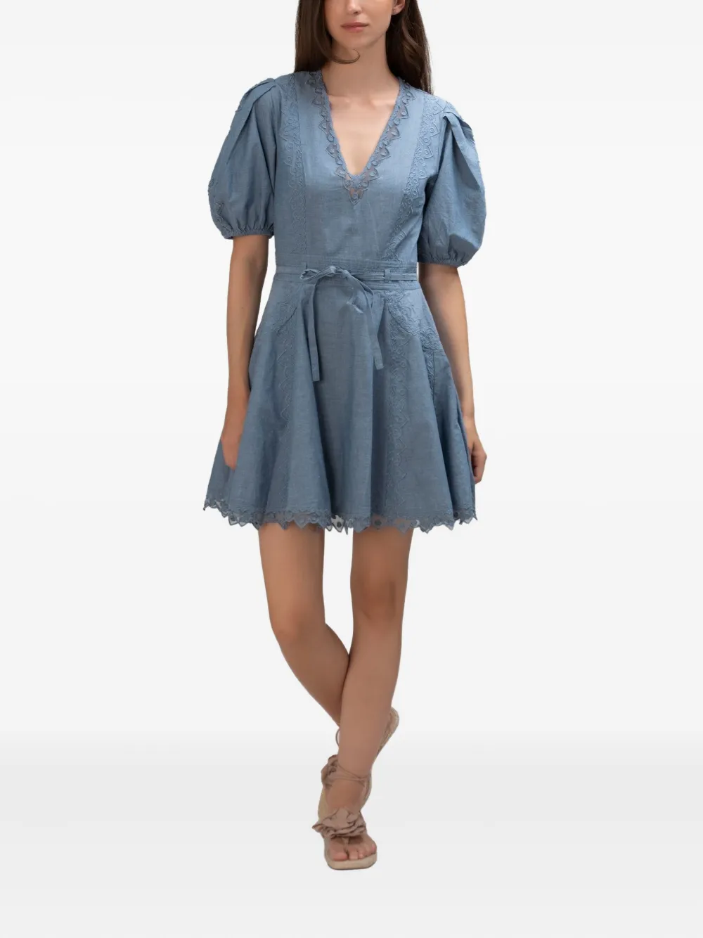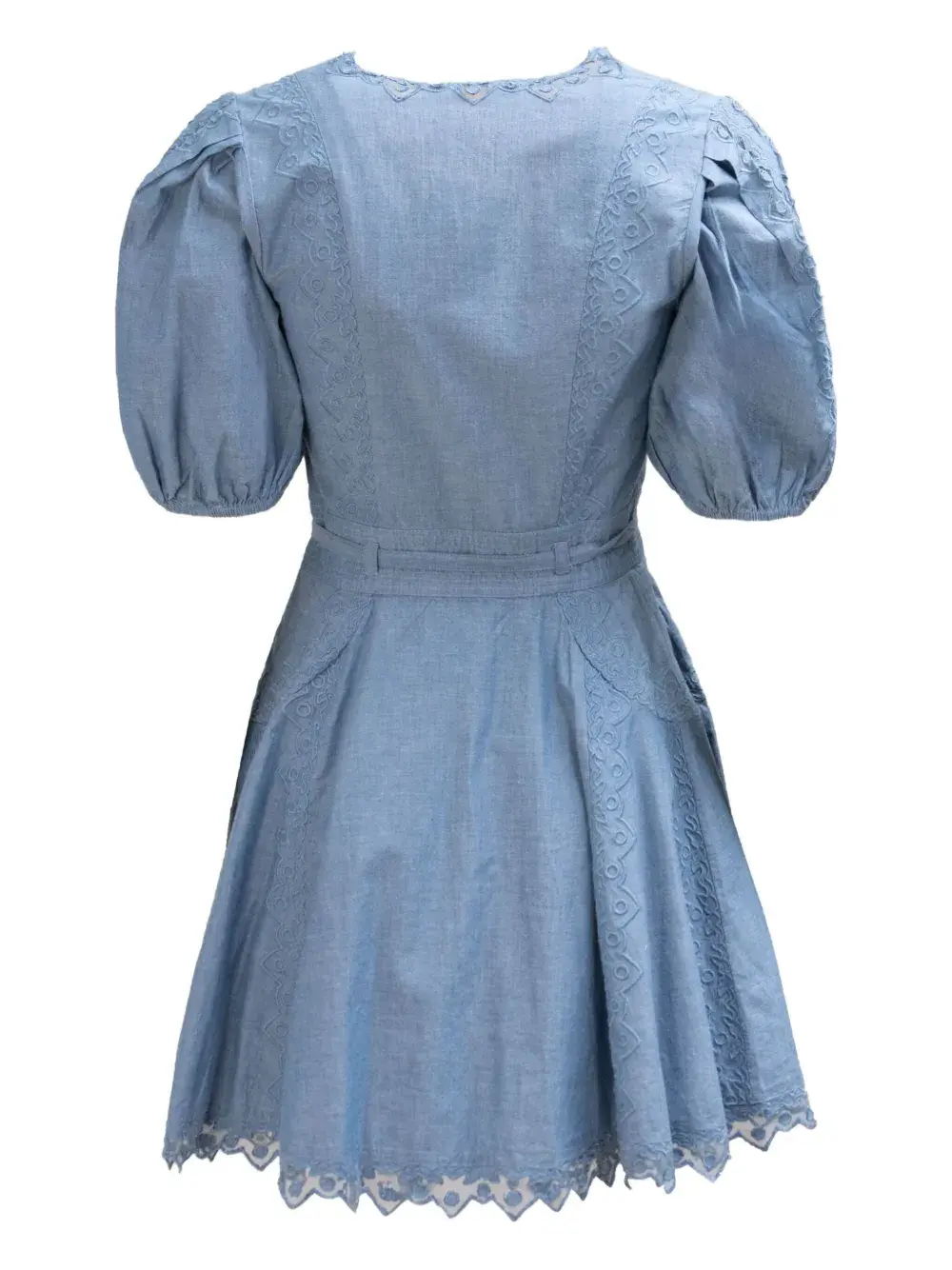 Светло-голубой хлопок V-образный вырез рукава-фонарики застежка-шнуровка спереди