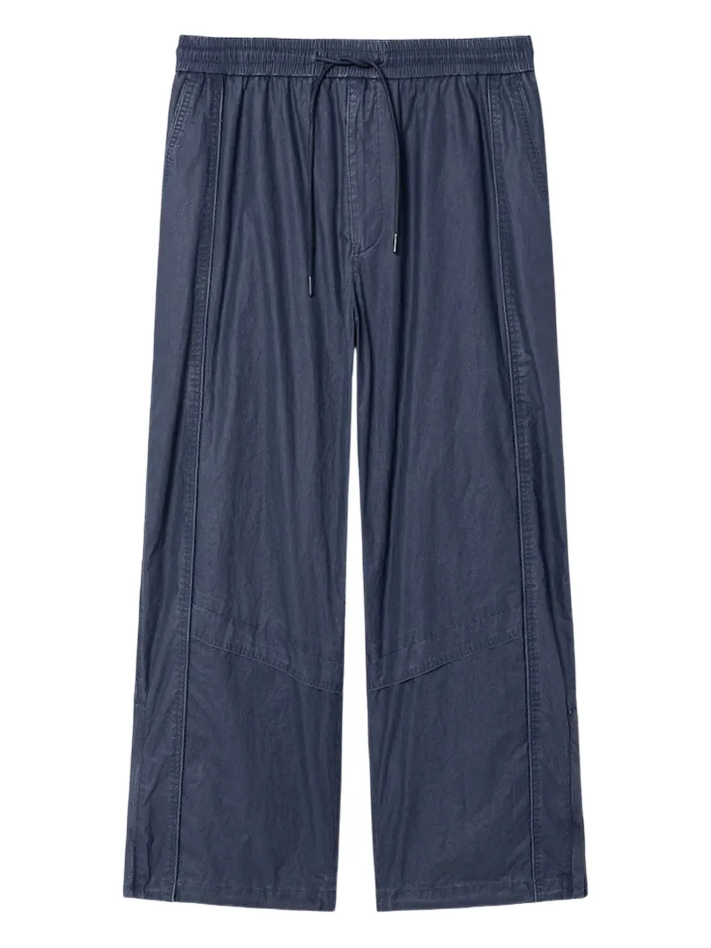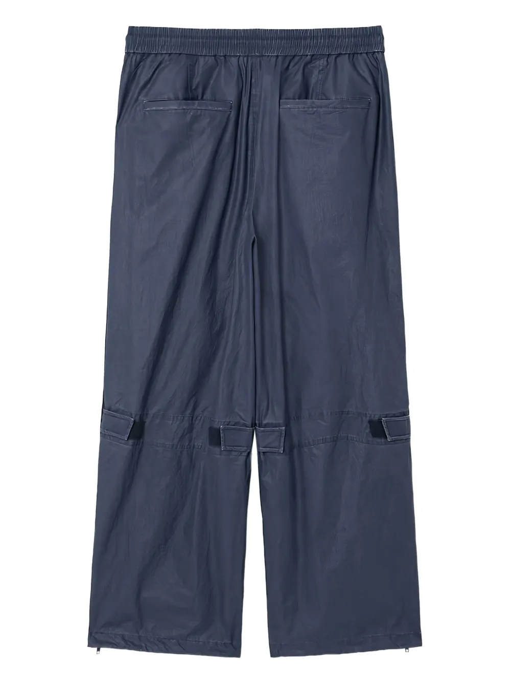 Темно-синий цвет, эластичный пояс на кулиске, два задних кармана