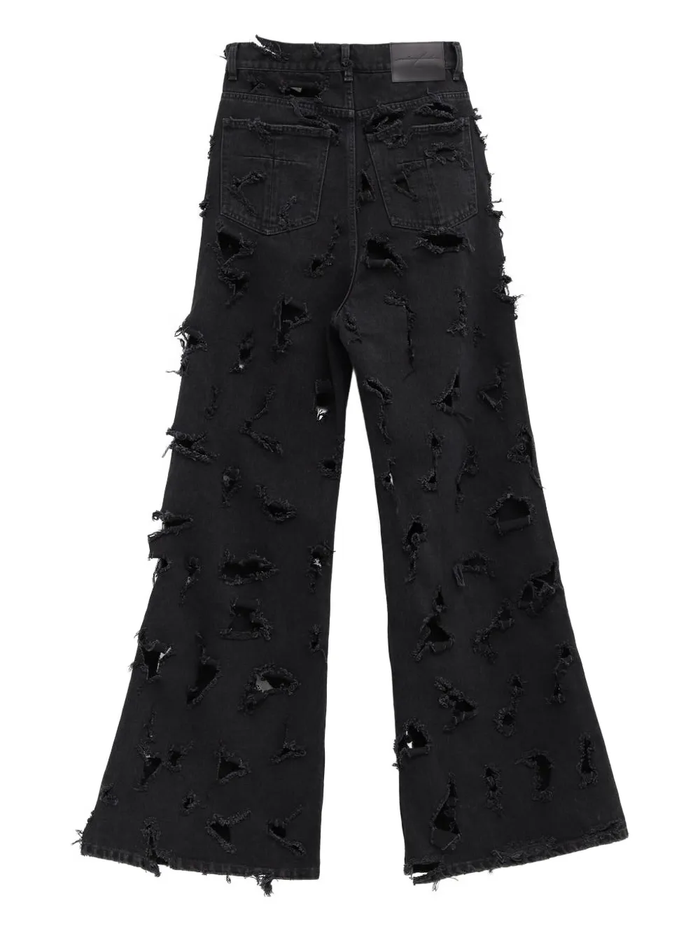 Черные джинсы с эффектом потертости, пятью карманами, шлевками для ремня, задним нашивкой с логотипом и необработанным краем
